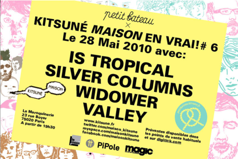 Au programme Is Tropical, trio nerveux aux sonorités énergiques et électriques, à suivre les anglais de Silver Colums, présents sur la dernière compilation Kitsuné Maison 9, mais aussi le groupe Widower, voyageurs, à mi - chemin entre 1980 et 2010. Pour finir, le duo parisien Valley apportera une touche fraîche et frenchie à ce line-up prometteur.