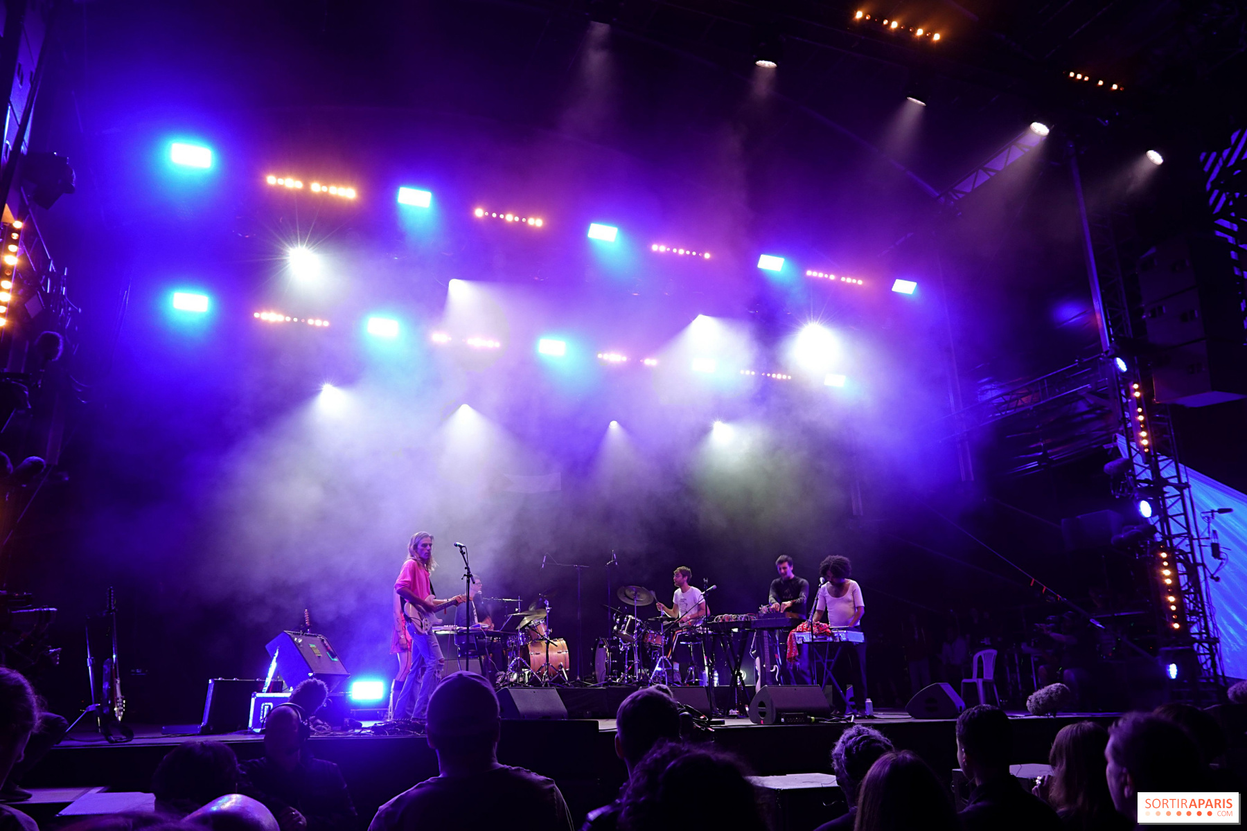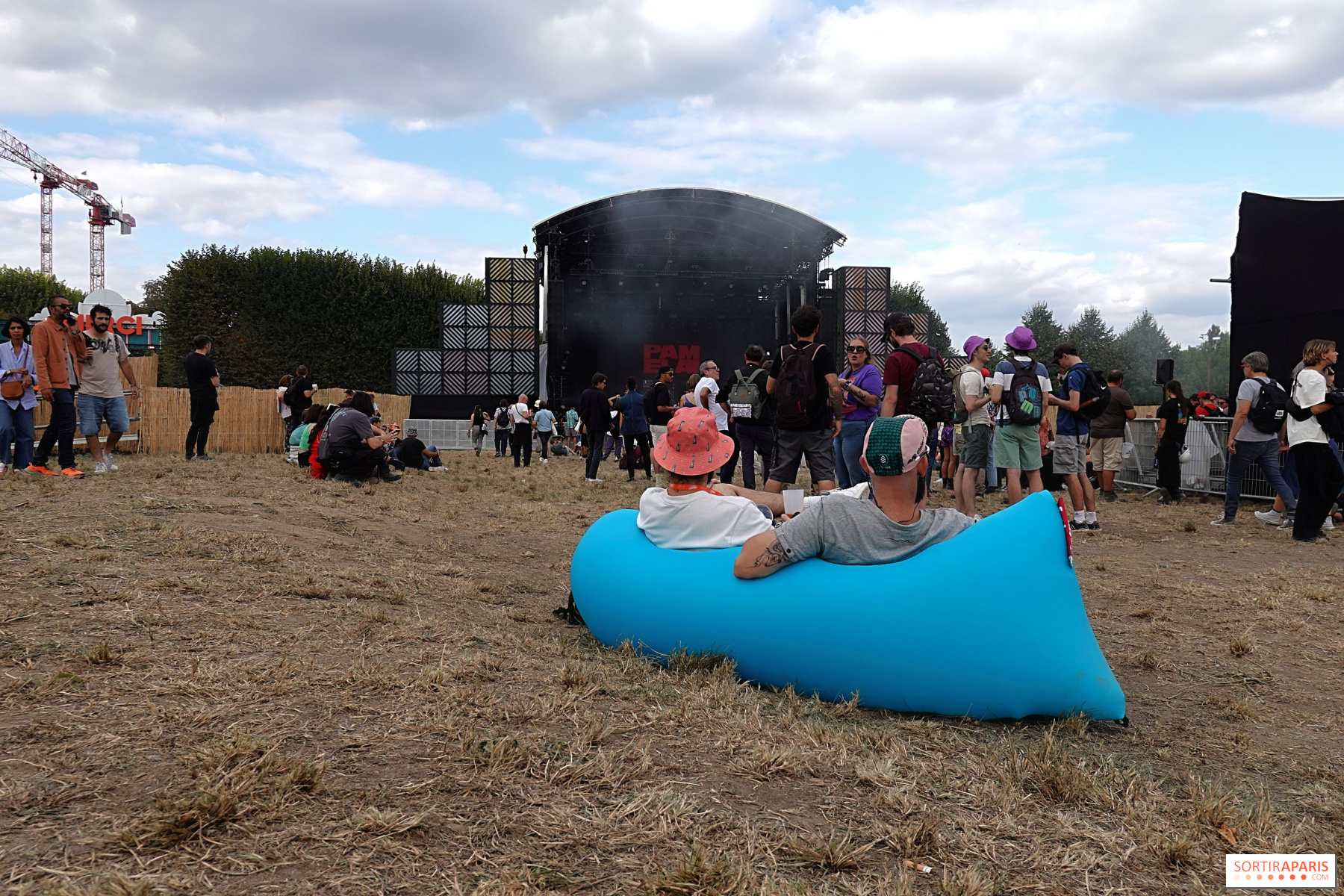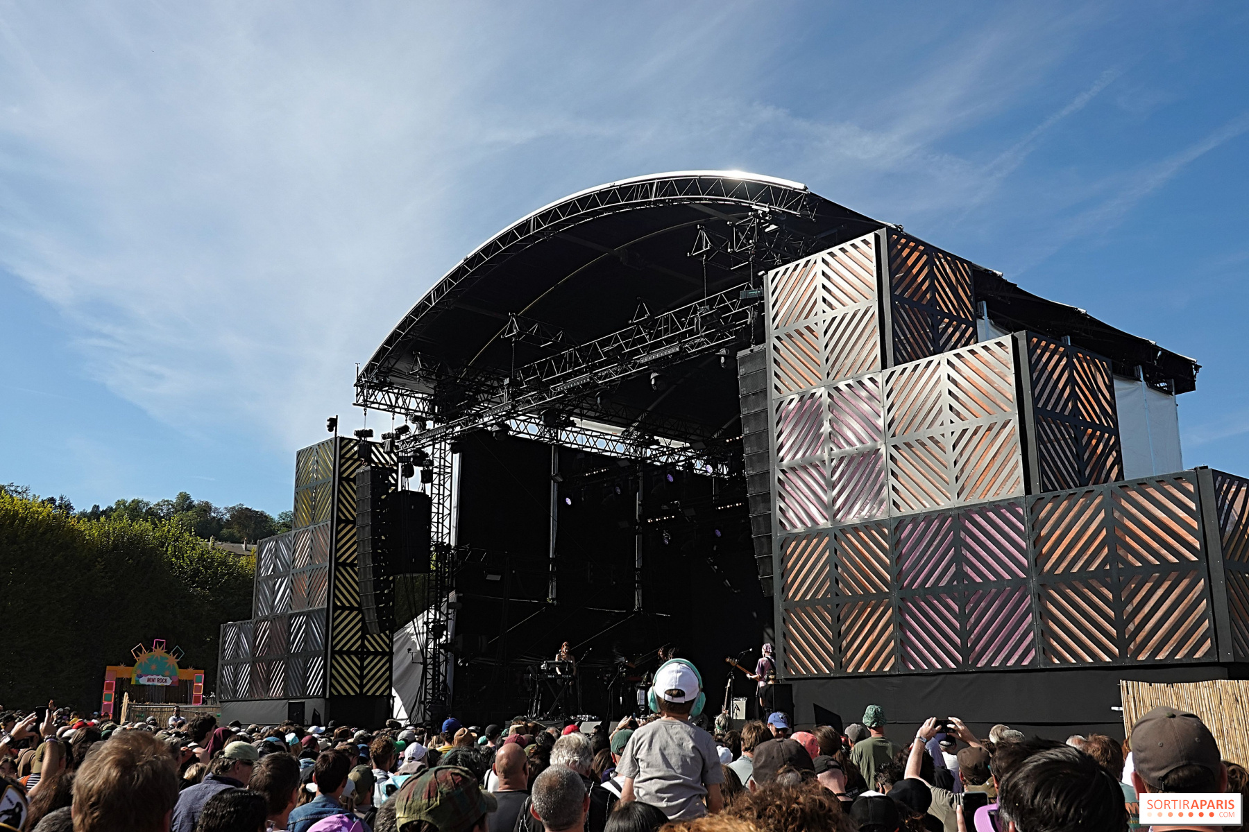 Ce samedi, avant le grand show très attendu de Justice sur la grande scène, on décide de s’attarder une partie de la journée devant la scène Bosquet. Située non loin de l’entrée (grand public) sur le site, cette petite scène fait la part belle à des artistes moins connus que les têtes d’affiche, mais déjà bien ancrés dans le paysage musical ou en devenir. Cette année, Rock en Scène a notamment programmé sur cette scène Barry Can’t Swim, Kids Return, Floating Points ou encore Sharon Van Etten et Kneecap.