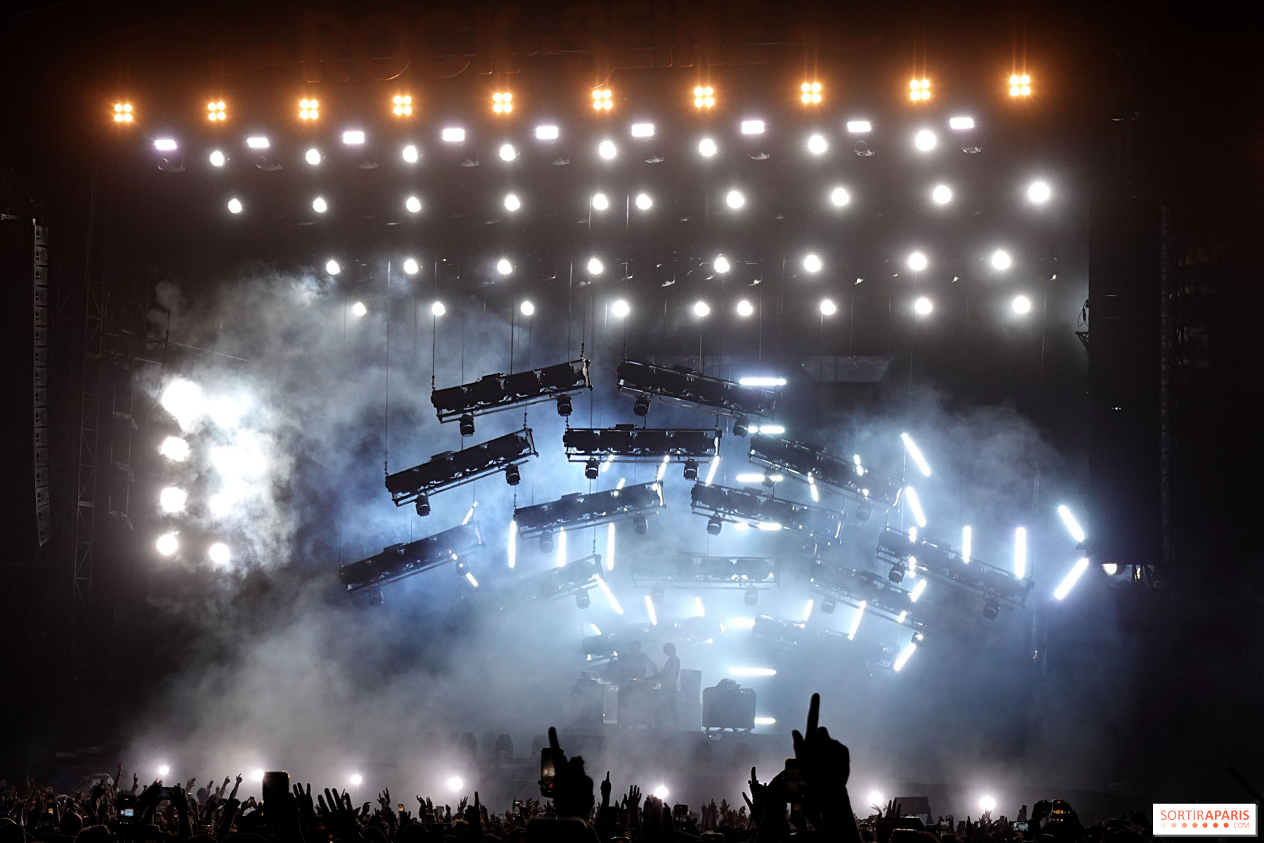 La French Touch de Justice était à l’honneur sur la grande scène de Rock en Scène pour clôturer de façon magistrale cette journée du 23 août. Et les fans du duo électro étaient présents en grand nombre ce samedi soir, reconnaissables à leurs t-shirts à l’effigie du groupe. Pour l’occasion, le célèbre duo composé de Gaspard Augé et Xavier de Rosnay avait sorti la grosse artillerie avec une belle scénographie et un impressionnant show lumières.