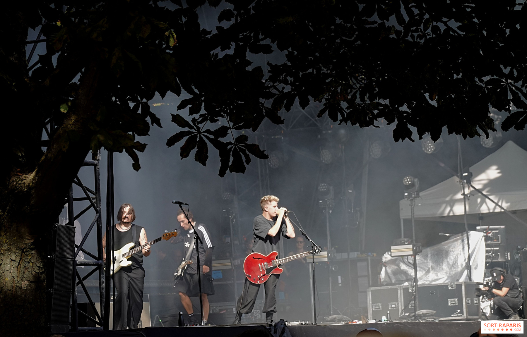 Ce samedi, on débute donc avec Pamela. Derrière ce prénom, se cache un duo composé du Breton Simon Quénéa, notamment connu pour être le batteur de Zaho de Sagazan, et de l’Anglais Samuel Sprent, originaire de Liverpool comme en témoigne l’écharpe à l’effigie du Liverpool FC visible sur la scène. Après avoir déjà attisé la curiosité de beaucoup lors de premières parties assurées dans des Zénith, et avant un Trianon au mois de novembre 2025, Pamela faisait donc escale à Rock en Seine ce 23 août. Un beau parcours pour ce groupe qui a publié son premier EP en mars dernier seulement.
