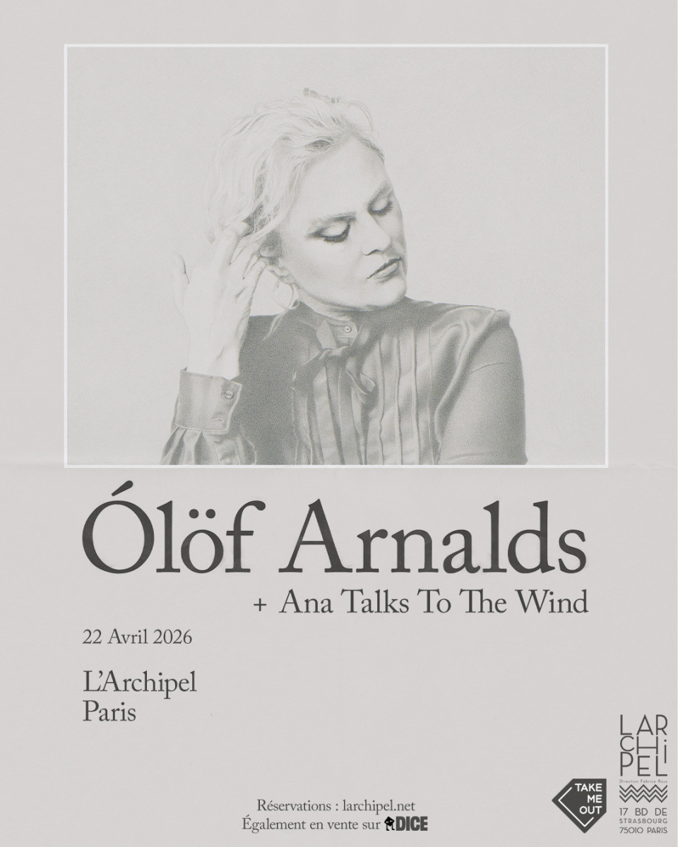 Pour l'occasion, Ólöf Arnalds compte investir la petite salle parisienne de L'Archipel le mercredi 22 avril 2026, avec en première partie Ana Talks To The Wind. Pour vivre ce moment musical unique, qui s'annonce hors du temps, ne tardez pas à réserver vos places. Soucieux de proposer des concerts à des prix abordables, le théâtre de L'Archipel met en vente des places aux tarifs de 21 euros (tarif réduit) et de 24 euros (plein tarif) pour cette soirée.
