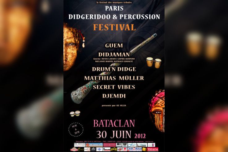 Dépaysement assuré avec Paris Didgeridoo et Percussion, festival de musiques tribales ! Au Bataclan le samedi 30 juin 2012.