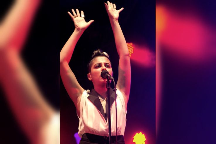 Après un set d’environ 45 minutes, c’est au tour de la captivante Carmen Maria Vega de faire son entrée sur scène. Très lookée, débordante d'énergie et le sourire aux lèvres, le ton est immédiatement donné ! Sa voix et son jeu de scène plaisent au public qui commence à se sentir comme un coq en patte ici, sur le Parvis de la Mairie du 3e arrondissement et se met alors à bouger sur les notes à la fois fraîches et entraînantes des morceaux joués sur scène.