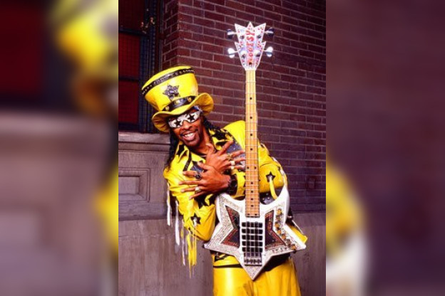 Bootsy Collins est un bassiste, chanteur et compositeur funk américain. Il a joué avec le grand James Brown et a collaboré avec de nombreux groupes funk.