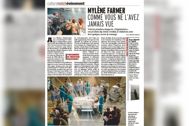 C'est le grand retour de la mythique et mystique Mylène Farmer. Avec la sortie de son nouvel album intitulé Point de suture et ses concerts au Stade de France en septembre prochain elle est au cœur de l'actualité. Le magazine Paris Match a assisté en exclusivité au tournage de son nouveau clip Dégénération. La belle y incarnerait une créature dotée de pouvoirs surnaturels et prisonnière de médecins maléfiques...En attendant la diffusion du clip prévue pour le 10 juillet, ce premier extrait de l'album est disponible exclusivement sur Internet et bat actuellement tous les records de téléchargement!
