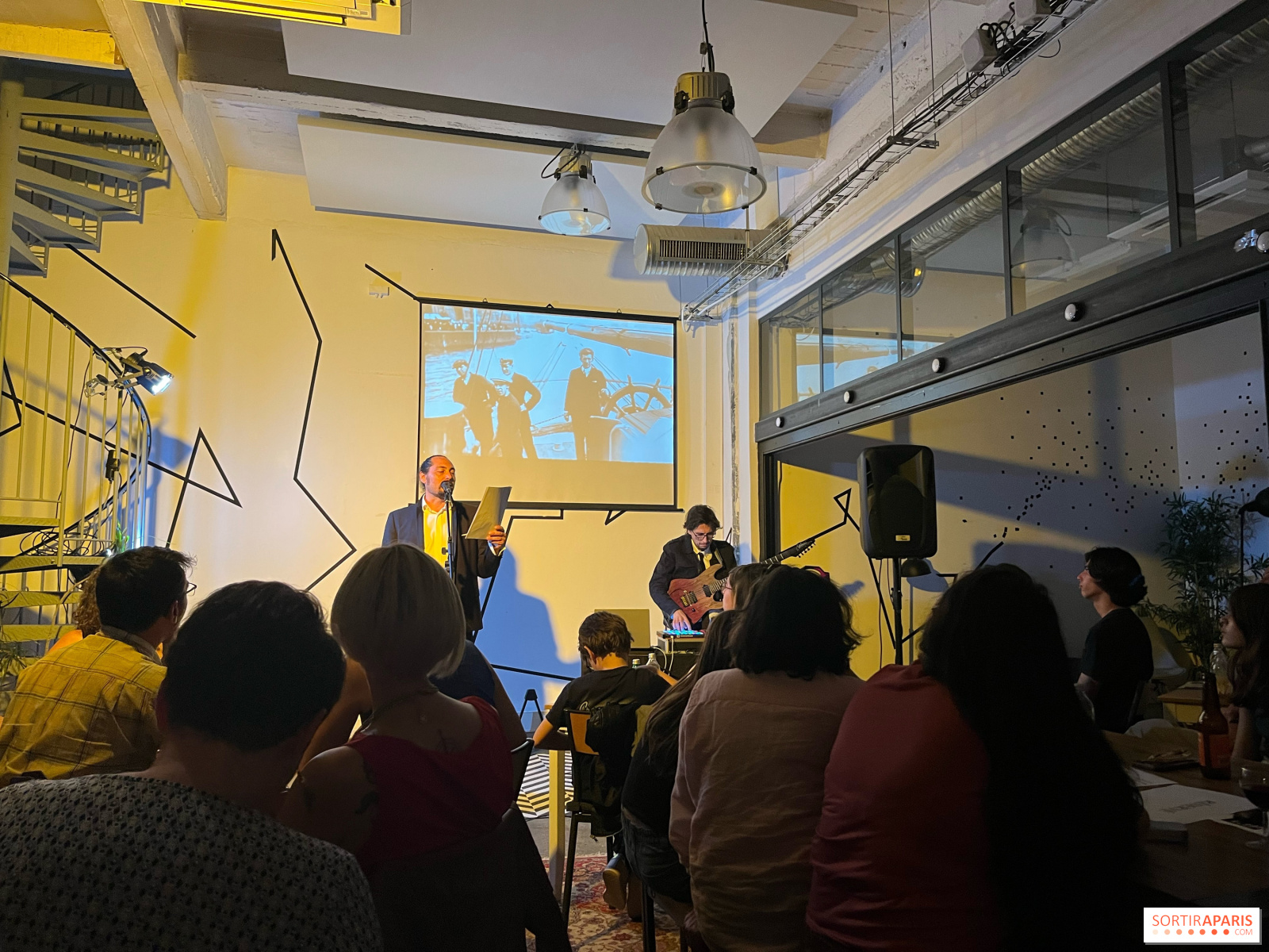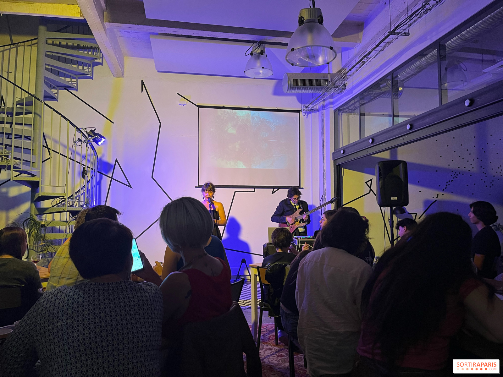 Un concept original et interactif qui donne envie de revenir pour tester d'autres histoires (il en existe une trentaine) ! Installés à l'une des nombreuses tables disséminées dans la salle, qui peut accueillir une trentaine de personnes, on commande une petite boisson, le lieu permettant de boire et de manger pendant la soirée. Devant nous, une petite scène avec une guitare et un micro, un écran où sont projetées des images d'illustration et une lumière tamisée. Pendant deux heures, Magali Gaudou et Jean-Christophe Siriac se relaient pour nous conter quatre histoires, accompagnés par Jerome Farrugia à la guitare.