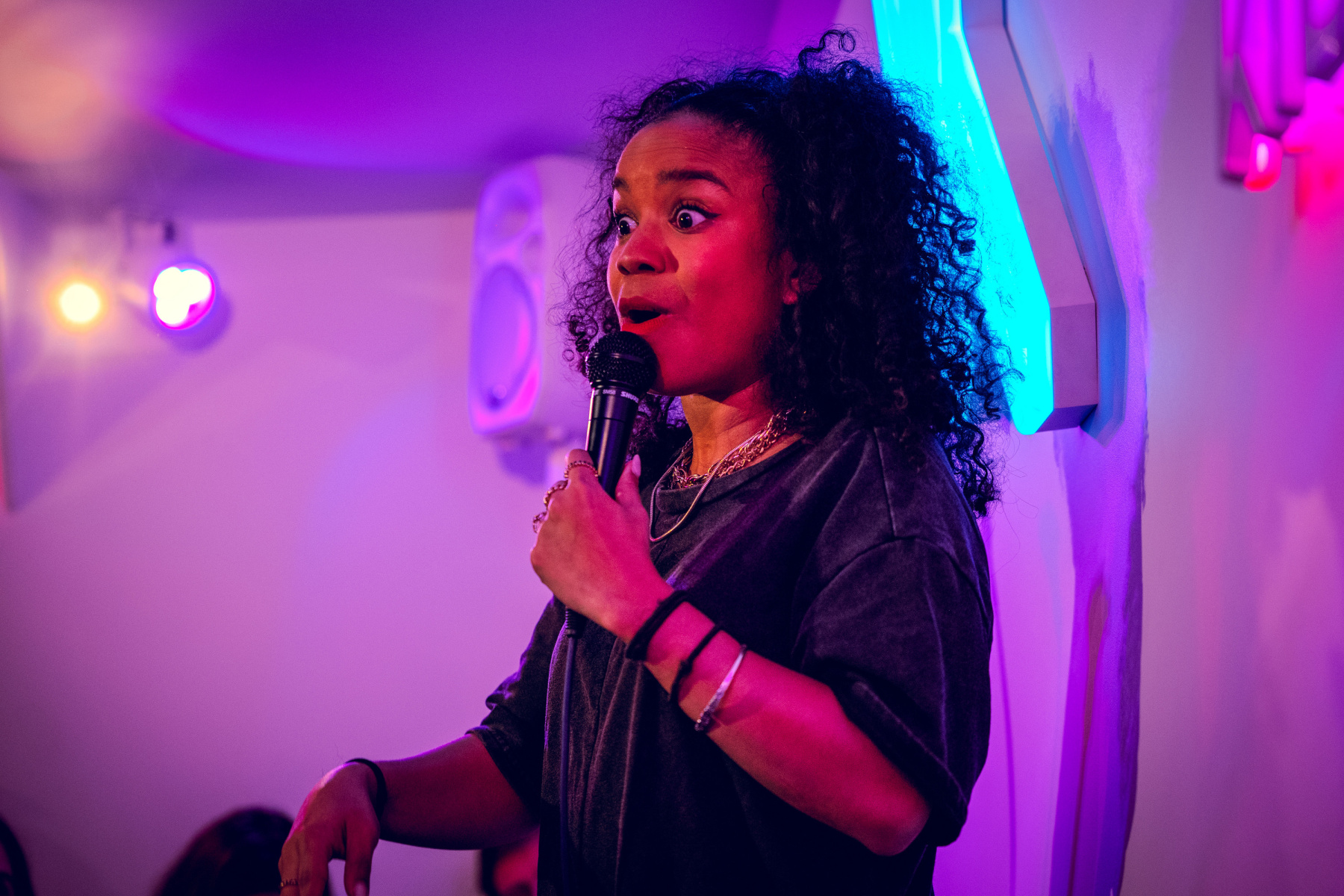 Une fois bien repus, descendez l’escalier monumental aux multiples couleurs pour découvrir une salle de spectacle qui respire le stand-up.