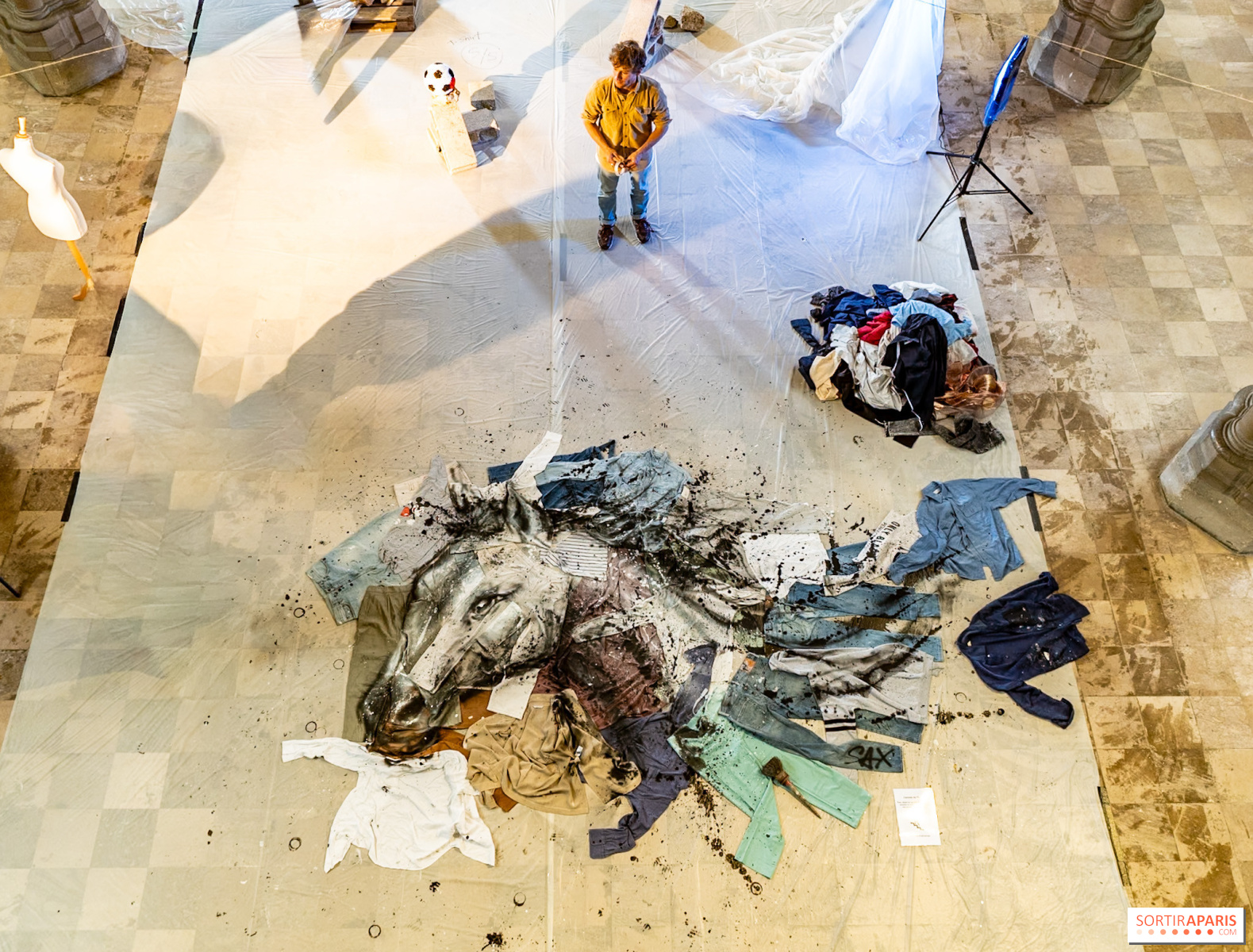 Letos nam SAX ponuja delo, ki ga lahko občudujemo od zgoraj. Ne zamudite priložnosti, da se povzpnete po stopnicah (dostop je mogoč v skupinah po 9 oseb) in ga občudujete. Ta kup oblačil je z vrha popolnoma smiseln.