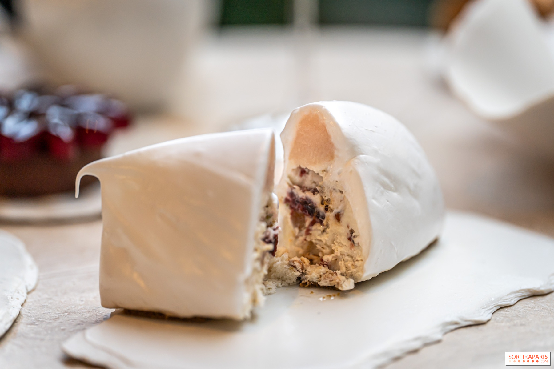 Ne bomo vas dolgočasili, razprodajo teže je ta božična rezina iz George V, delo Michaëla Bartocettija. Ta zasnežena kreacija je pravi sladki dragulj, ki si ga je vredno ogledati. Kuhar je ustvaril harmonijo okusov z biskvitom z vaniljo iz Madagaska in karameliziranimi piemontskimi lešniki. Vse skupaj je okrašeno z nežno vaniljevo peno, bogato kremno kremo in vložkom s čokolado ter limono, ki dodaja nepričakovan svež pridih. Anglijska krema je pripravljena s cvetlico Melilot, rastlino, ki naravno zaznamuje okus tonke fižola, in spremlja rezino, presenetila pa nas je s svojo eleganco. Ta kombinacija tradicije in ustvarjalnosti, med sladkostjo in značajem, smo oboževali. To je ravno tisto, kar loči dobro slaščico od izjemne kreacije.