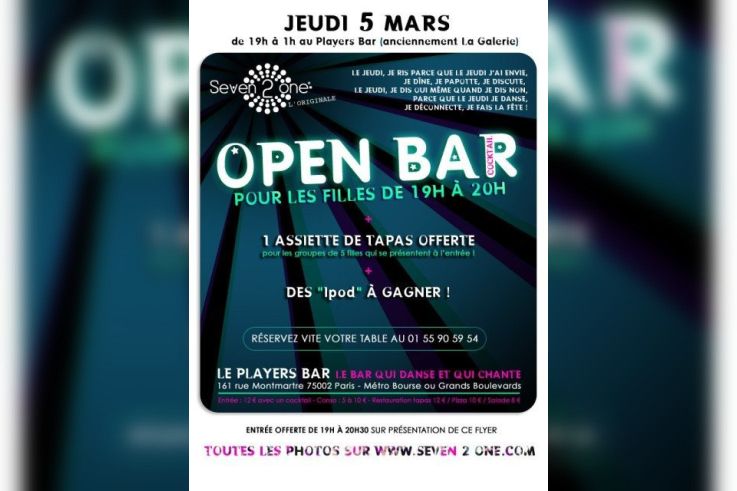 Seven 2 one vous donne rendez-vous ce jeudi de 19h à 1h au Player's Bar ! Venez passer un moment de rires, de détente, de tchatche et de fête dans le bar qui chante et qui danse !