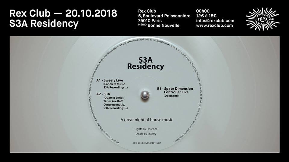 Le fameux club des Grands Boulevards reçoit en effet S3A Residency qui a décidé pour l’occasion de convier Space Dimension Controller. Sweely sera aussi de la partie.