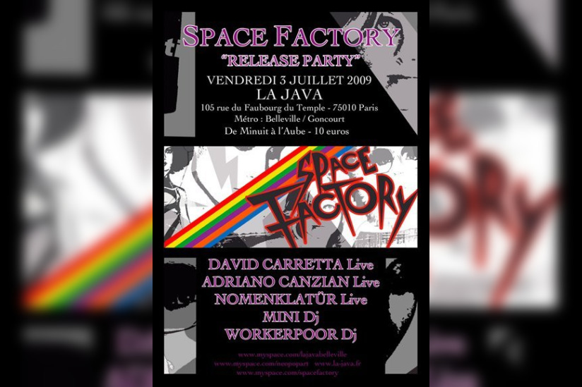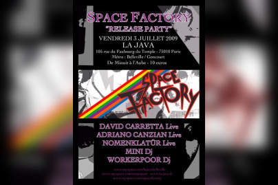 DAVID CARRETTA (Space Factory), le célèbre boss du label, enchaînera avec un live italo disco electro love dance spatial avant qu’ADRIANO CANZIAN (Space Factory), dark et fantasmagorique, nous présente son album METHAMORPHOSIS en live.