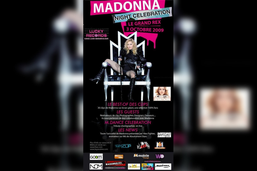 "Madonna night celebration" c'est le nom de cet événement. Une soirée placée sous le signe de la fête et la célébration de la carrière visuelle de Madonna. Au programme : de la musique, des témoignages de personnalités qui ont travaillé avec Madonna, et des vidéos. Au cours de la soirée et pour la première fois en France les 30 clips de Madonna qui ont marqué l'histoire de l'industrie musicale seront diffusés sur le grand écran du Grand Rex. Autre surprise, la soirée vous offrira la possibilité d'assister à un Tribute MDANCE reprenant les chorégraphies de Madonna les plus mythiques.
