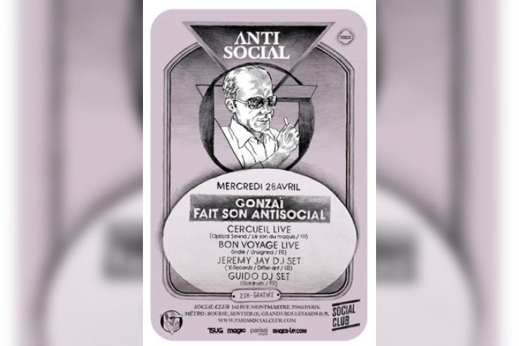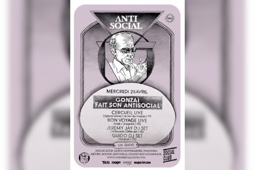 Line up : CERCUEIL LIVE (OPTICAL SOUND / LE SON DU MAQUIS/ FR) BON VOYAGE LIVE (INDIE / UNSIGNED / FR) JEREMY JAY DJ SET ( K-RECORDS / DIFFER-ANT /US) GUIDO DJ SET (GOLDRUSH / FR)