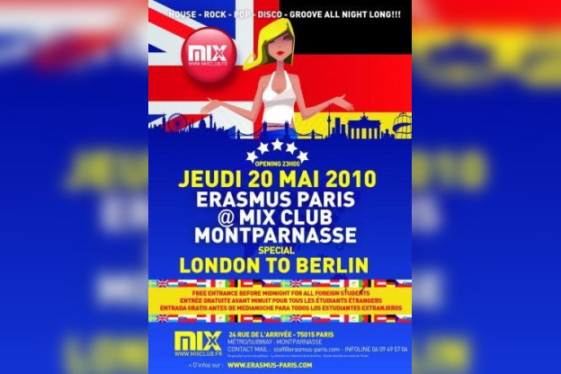 Le MixClub présente tous les jeudis, ERASMUS PARIS, le plus grand rendez-vous d'étudiants étrangers à Paris.