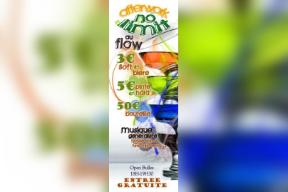 Trop de stress, les exams approchent, les révisions s'accentuent, le moral en prend un coup. Tu as envie de décompresser après une longue journée de cours ou de boulot ? Viens faire un tour au Flow pour un AfterWork No Limit !!!!
