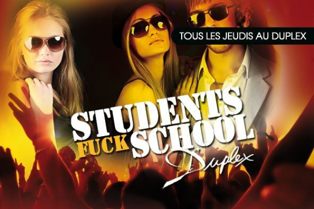 Toute l'équipe du Duplex avec la participation de nombreuses associations étudiantes est heureuse de vous convier tous les jeudis dès 23h00 à la soirée Students Fuck School.