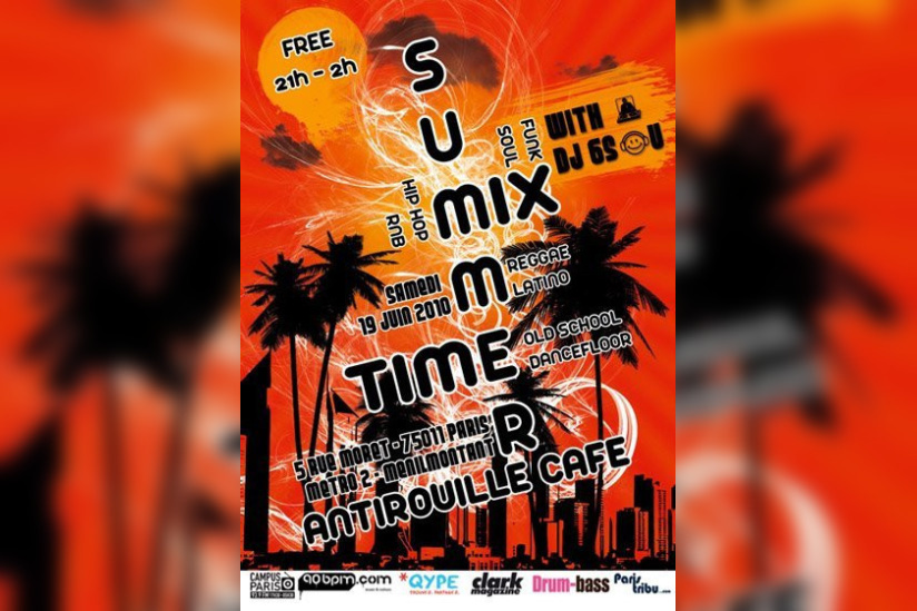 Au programme, un "summer mix" exotique et eclectique, aux arômes de R&B, Hip Hop, Funk, Soul, Old School, Dancefloor, Reggae et Latino. Venez vous rafraichir avec un petit cocktail et vous déhanchez sur la piste de 21h à 2h.