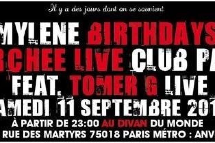 Avec en exclusivité live, Tomer G, DJ remixeur officiel des derniers hits de Mylène Farmer. C'est dans la salle mythique du divan du monde, récemment rénovée, où Baudelaire (cher à Mylène), y avait ses habitudes... que nous vous proposons de fêter cette double date anniversaire, dans une ambiance des plus sexy-tonik.
