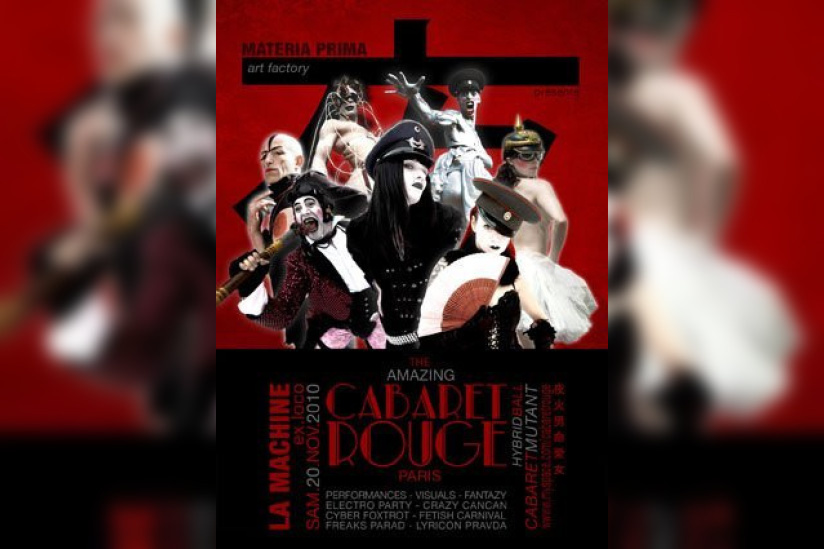 Cabaret Mutant, Hybrid and Festish Ball, Performances, Visuals, Electro party, Crazy Cancan, Cyber Foxtrot, Carnaval, Freaks Parade et Baraque Mutante, THE AMAZING CABARET ROUGE est le label d’une soirée à la croisée de tous les genres, de toutes les cultures et de toutes les tribus (Cyber Punk, Festish, Glam, Ghotic, Vampyre, Victorian, Manga, Cyber Dada, Latex, BDSM, Futurist, Vaudeville, Drag, Burlesque, Queer, Travesty, Post Punk, Libertin, Creature, Bod Mod, Hybride Cosplay, Dandy…).