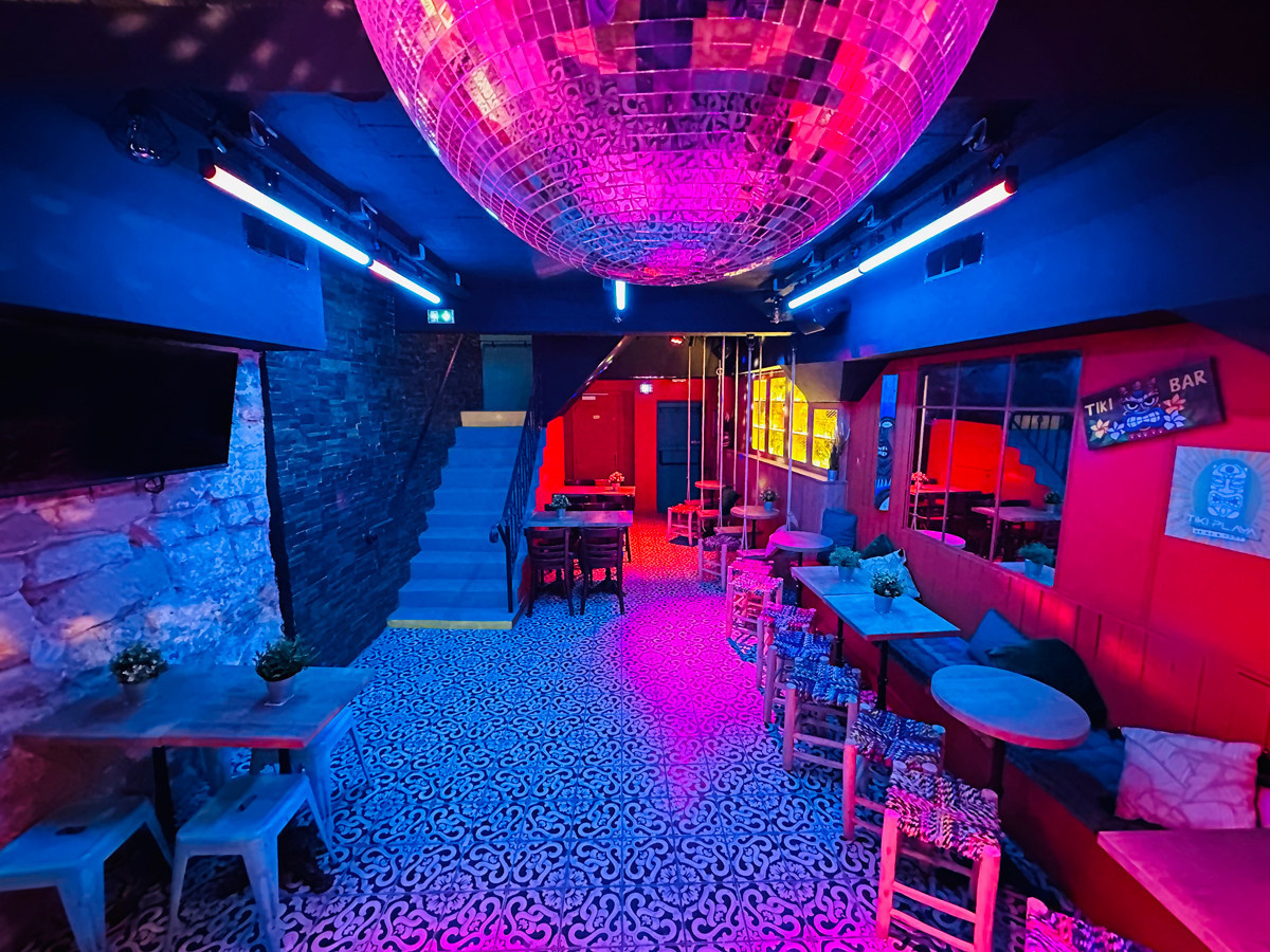 Un véritable bar de plage au rez-de-chaussée et un club au sous-sol :