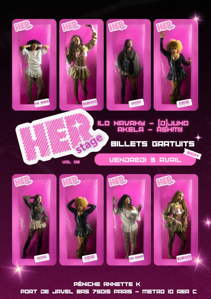 Le collectif HERstage investit la péniche avec une line-up 100 % féminine : Ilo Navahy, (D) JUNO, Akela et Ashimi. Une soirée tournée vers les nouvelles scènes, avec une attention particulière portée à la représentation et à l’émergence.