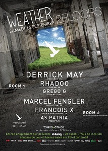 Aux programme : DERRICK MAY, MARCEL FENGLER, RHADOO, FRANCOIS X, GREGO G et AS PATRIA se succéderont aux platines pour prolonger le temps d'une nuit les plaisirs trop courts de l'été. Lunettes de soleils et écran total seront de mises !!!