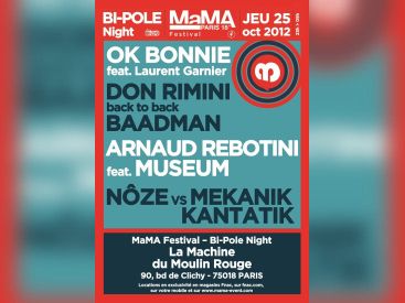 Ce sont toutes les différentes scènes du 18ème qui vous attendent ce soir pour célébrer avec elles l'effervescence musicale dont fait preuve la France mais aussi l'international. Nous vous attendons quant à nous avec Bi-Pole à la Machine du Moulin Rouge pour (re)découvrir Ok Bonnie, Museum, Baadman et Mekanik Kantatik, aux côté de leurs parrains : Laurent Garnier, Arnaud Rebotini, Don Rimini et Nôze.