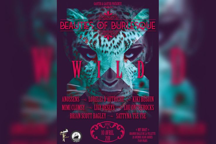 La revue "Wild" est le premier tableau de l’ultime triptyque de la revue Beauties of Burlesque. Pour signer son retour, Garter & Garter vous propose de découvrir un véritable bestiaire burlesque au cœur de la jungle urbaine. Ces 8 artistes indomptables et affolants sont la promesse d’un voyage délicieusement subversif et férocement sensuel.