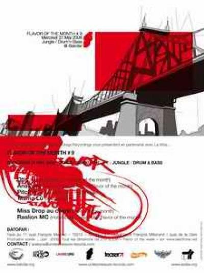 Retour à la " normal " après ces 2 anniversaires fêtés en grand pompe pour les " Flavor of the month " avec 2 guests aux sensibilités différentes mais tout aussi intéressantes... Mama Lü, qui malgré sa discrétion, est présente régulièrement sur les line-up depuis plus de 4 ans, cela sans compter sur sa résidence au Glazart pour les soirées " Panamix "... elle sera accompagnée de Miss Drop, notre chanteuse résidente qui monte, qui monte, avec qui elle a retournée les dance - floor très récemment en Allemagne, Pitch-inun de nos " jeunes " qui ne cesse de faire parler de lui, viendra nous montrer comment il à fait jumper il y a 2 mois les japonais lors de sa tournée au pays du soleil levant... nos résidents Otis & Anakyneaccompagnés par Miss Drop au chant et Raslion MC enfonceront le clou comme à leur habitude... à noter aussi un(e) invité(e) surprise pour le début de soirée...