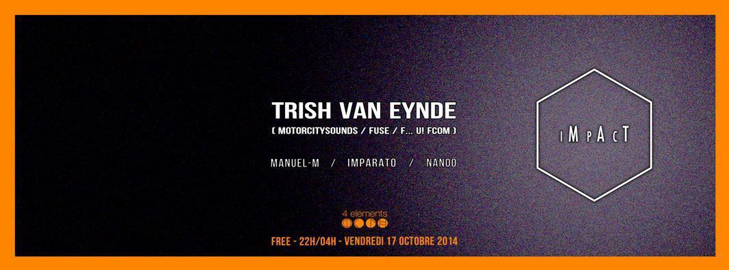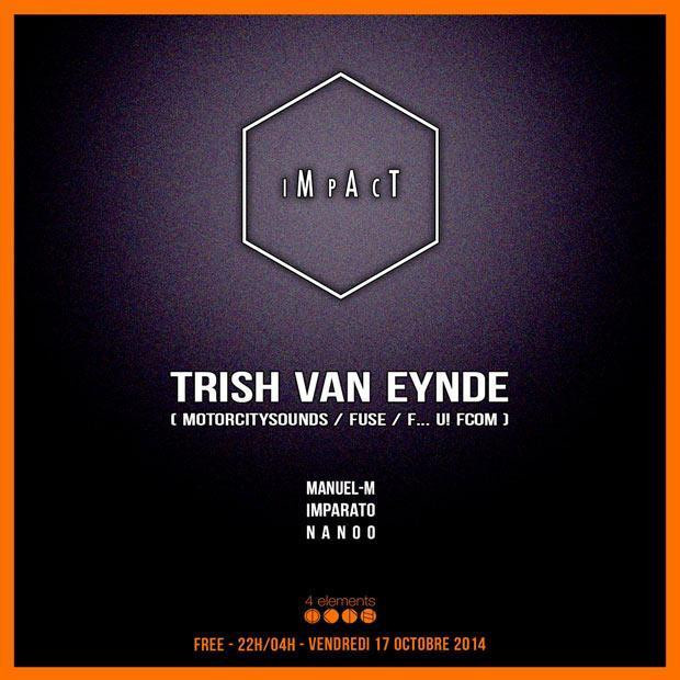 Impact fait sa rentrée le 17 octobre au 4 éléments 2.0. Au programme, un lieu totalement rénové avec un nouveau soundsystem des plus performants et une artiste d’envergure internationale : Trish Van Eynde.