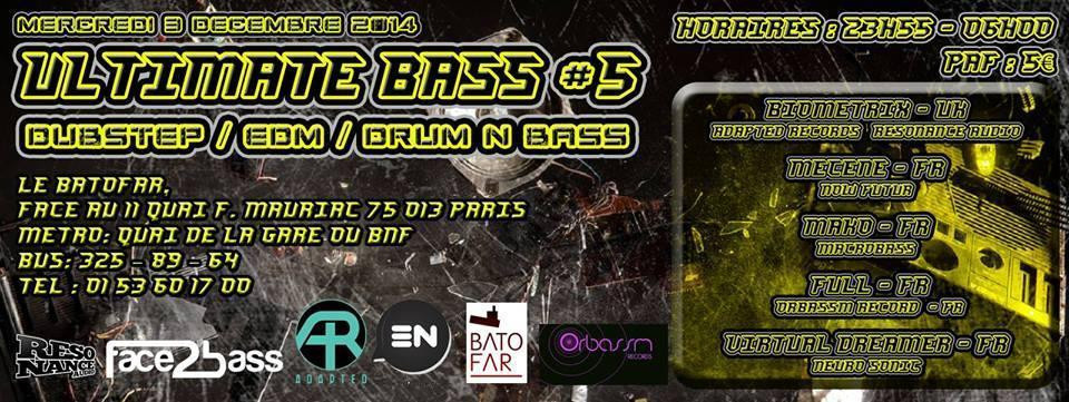 L'équipe Ultimate Bass vous présente sa cinquième édition avec la venue de Biometrix qui viendra présenter lors d’un dj set, ses dernières productions Dubstep.