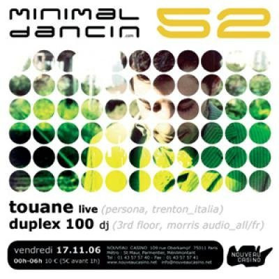 Après un anniversaire mémorable, le duo Duplex 100 continue le défrichage electro minimal en invitant Touane. De son vrai nom Marco Tonni, Touane est italien. Signé chez Trenton et Persona, Touane est un artiste perfectionniste et hyperproductif avec deux albums en deux ans ! Son live oscille entre electronica et house minimale, résolument tourné vers le dancefloor ! Les Duplex 100 complèteront la danse.