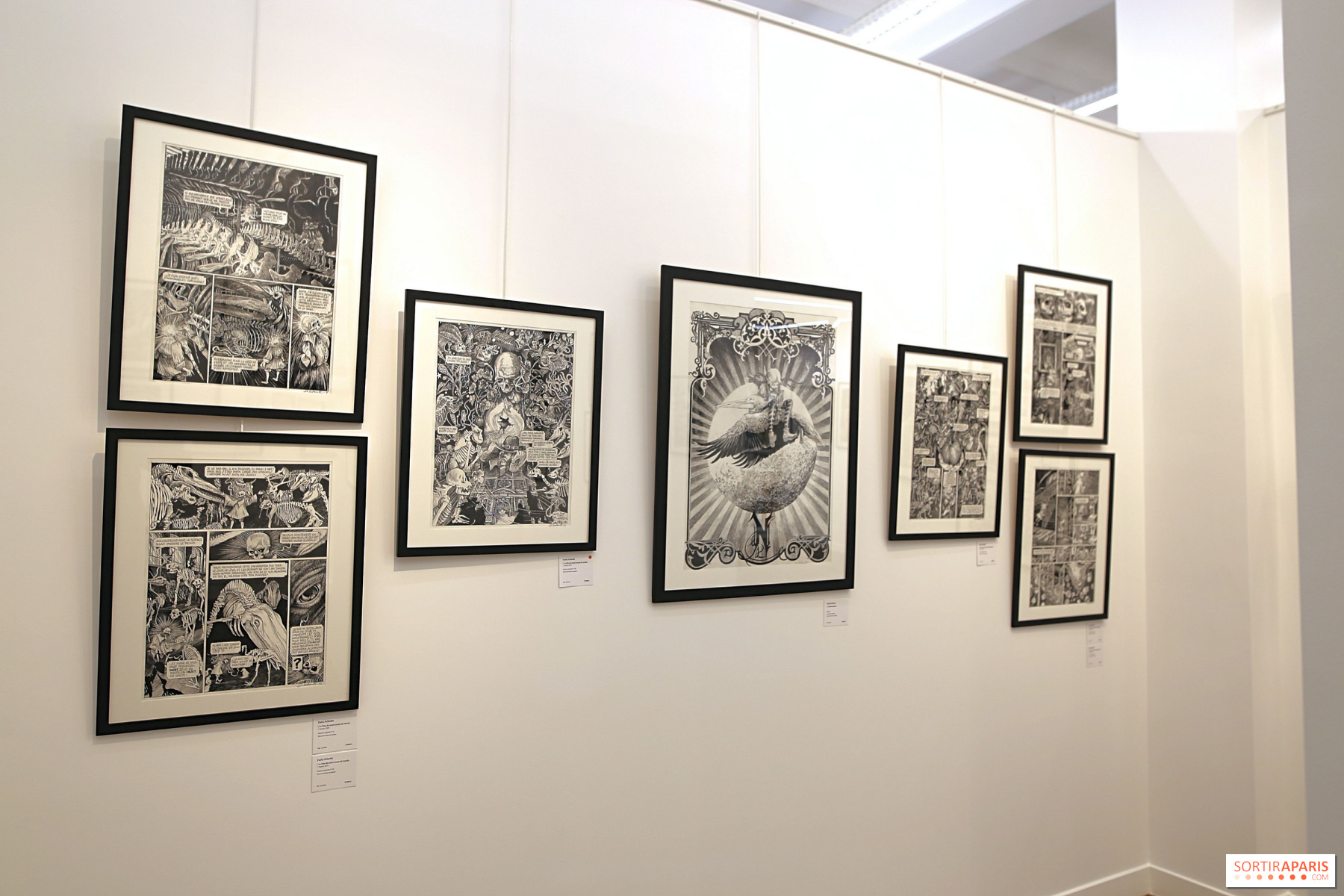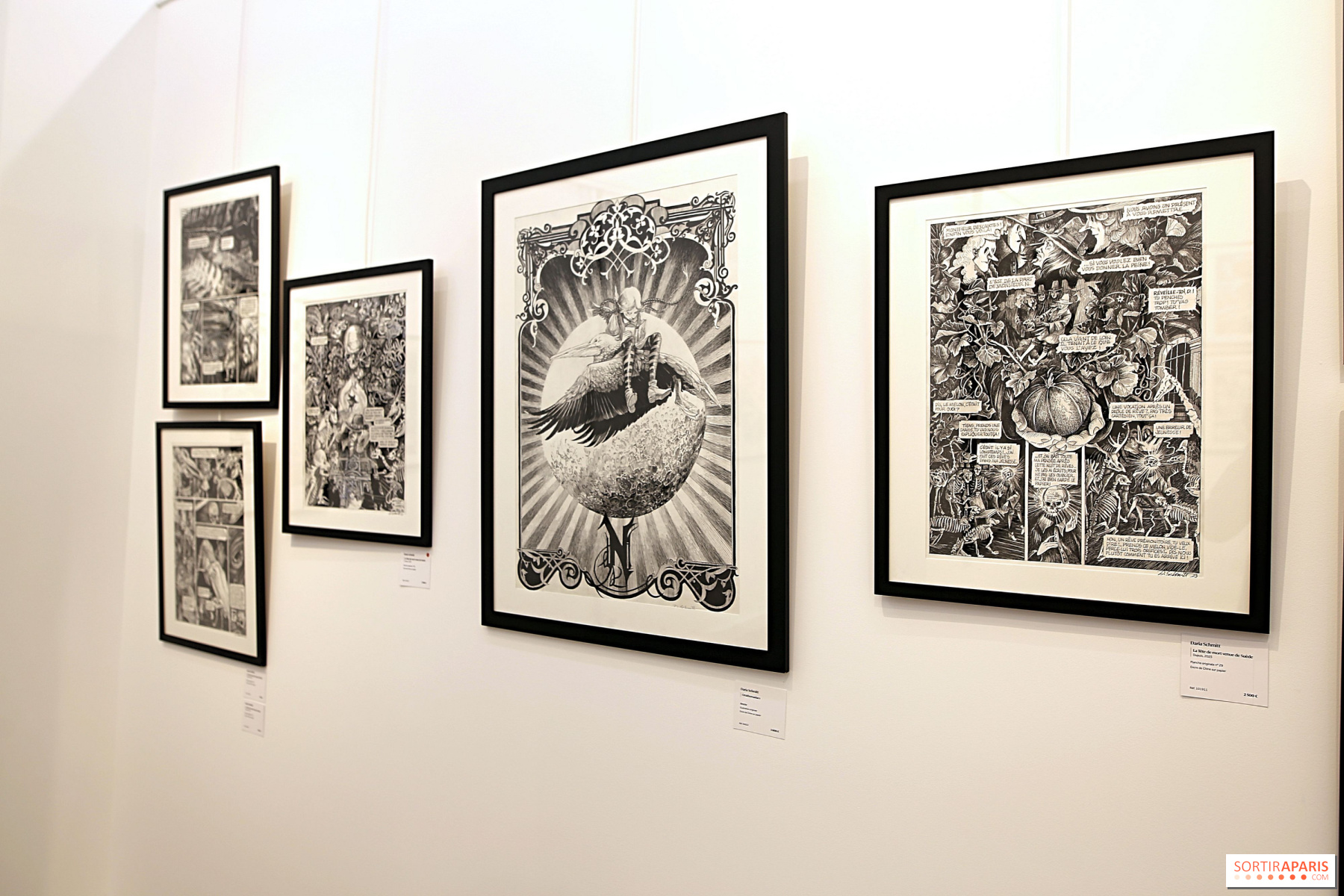 Fram till den 20 september 2025 visar Daniel Maghen Gallery även Daria Schmitts imponerande och fascinerande verk, i samband med utgivningen av hennes senaste bok"La Tête de mort venue de Suède". Författaren, som nu är känd för"Ornithomaniacs" och"Le Bestiaire du Crépuscule", fortsätter sitt utforskande av litteratur och filosofi."La Tête de mort venue de Suède" kombinerar konst och vetenskap och är en överraskande undersökning som spårar den osannolika historien om René Descartes skalle. Det hela är färgat av drömlik poesi, med ultra-elaborerade svartvita teckningar.