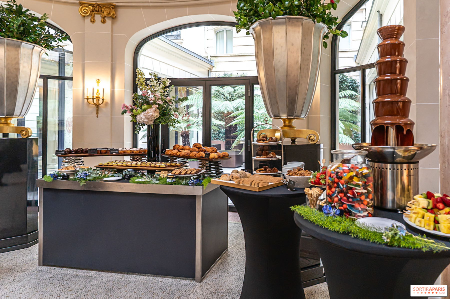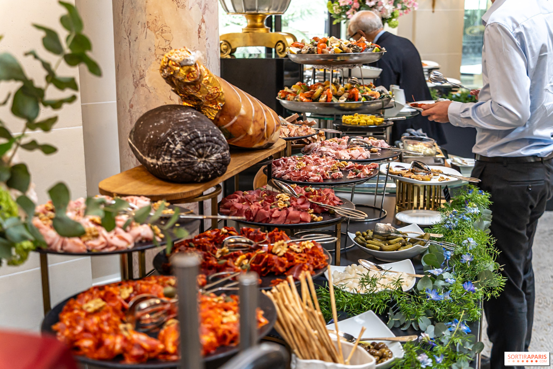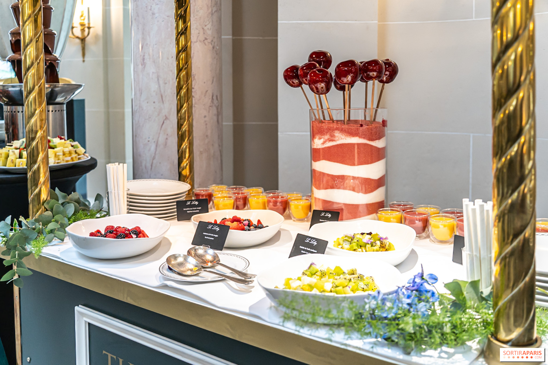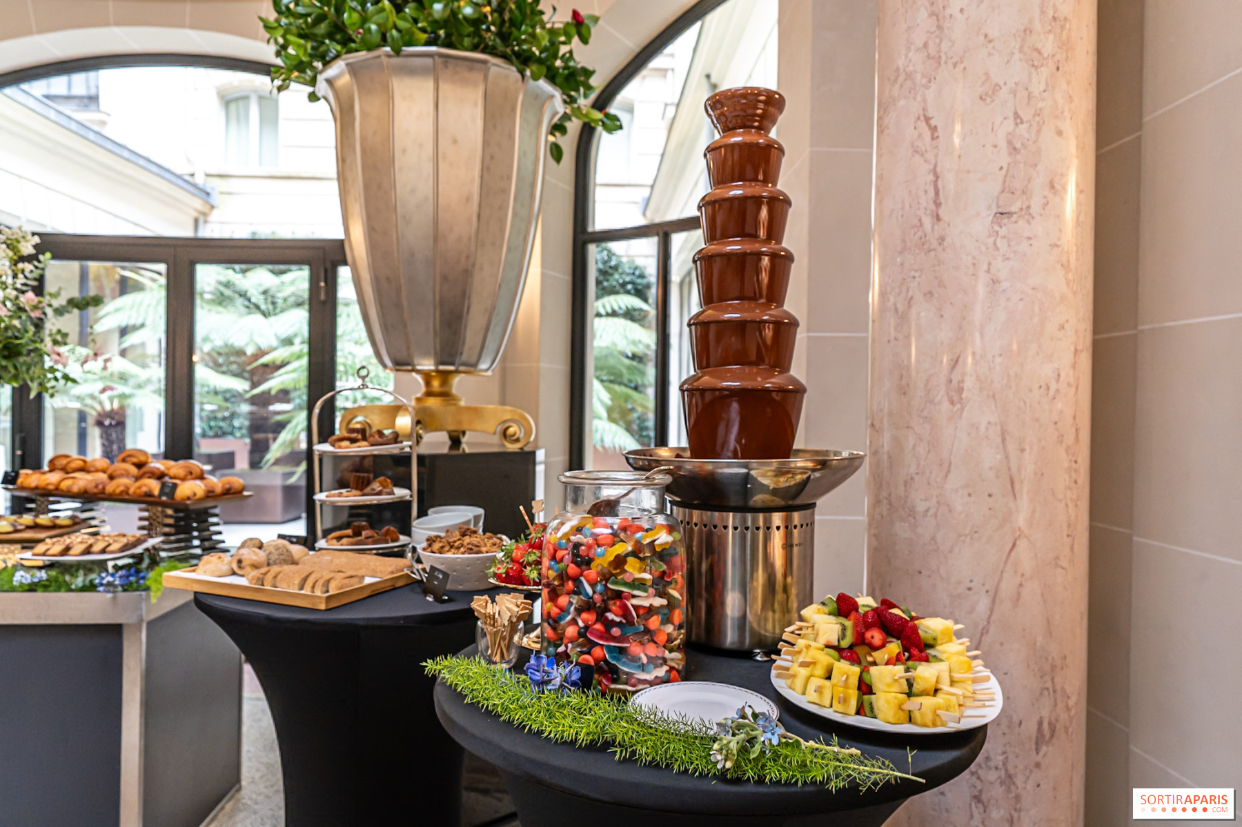 Du kommer också att vilja ta en titt på det imponerande urvalet av mogna ostar och de olika brödsorterna som erbjuds, innan du ger efter för den söta frestelsen: gyllene viennoiserier, hembakade kakor och en mängd bakverk där cheesecake ligger bredvid en krämig flan och en perfekt utförd choklad Saint-Honoré. Ett särskilt omnämnande bör göras av chokladfontänen, där du kan doppa i färsk frukt efter behag, om det nu inte är pommes d'amour du är ute efter.