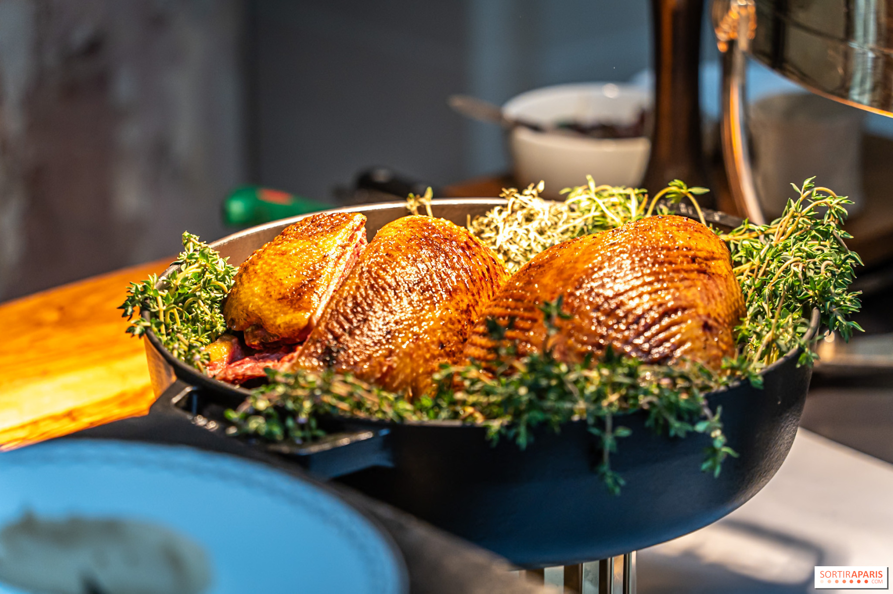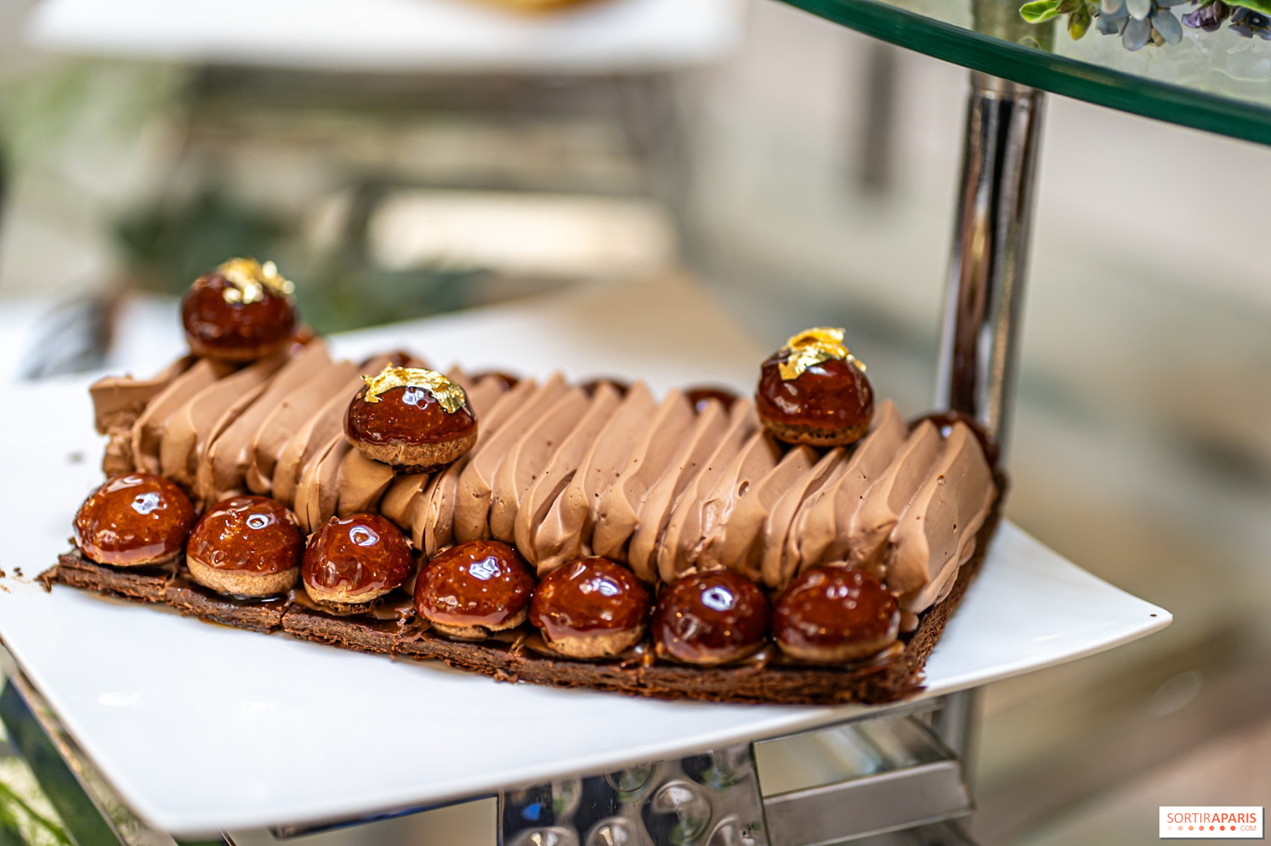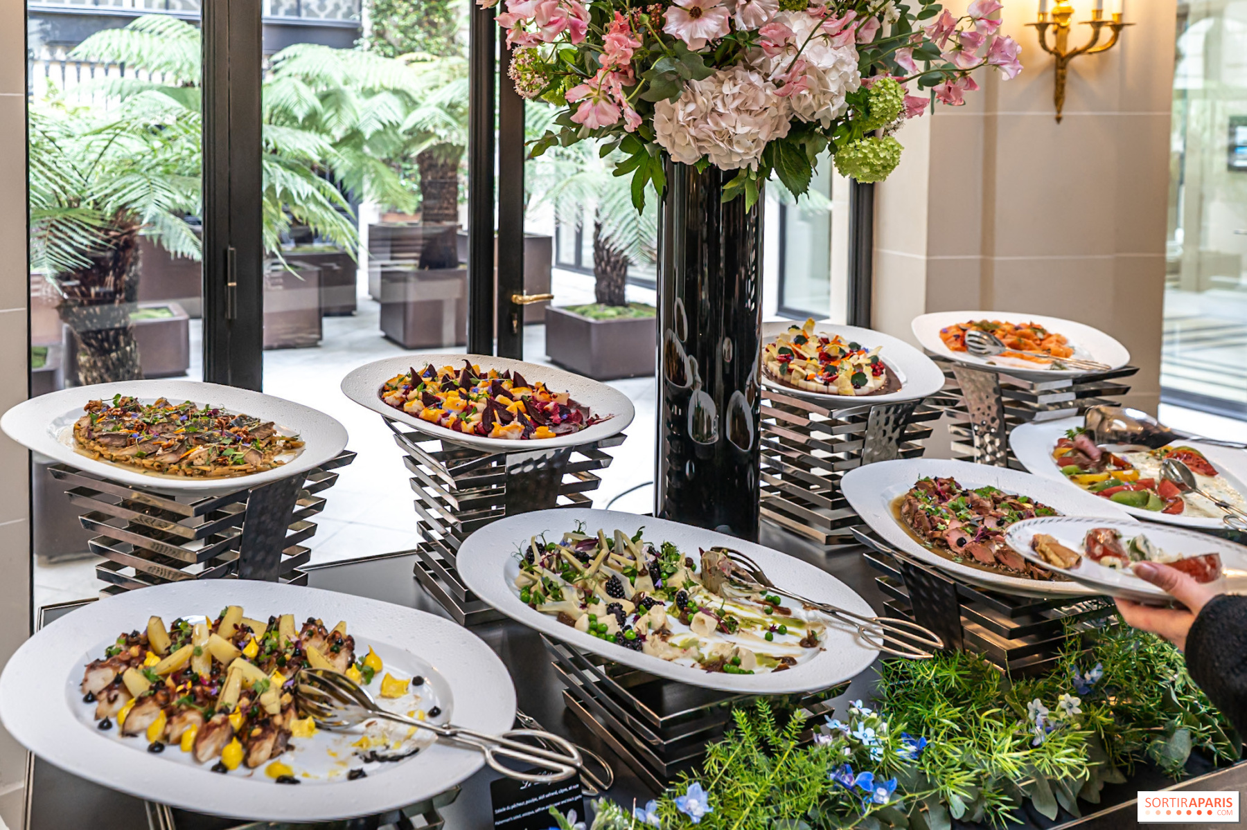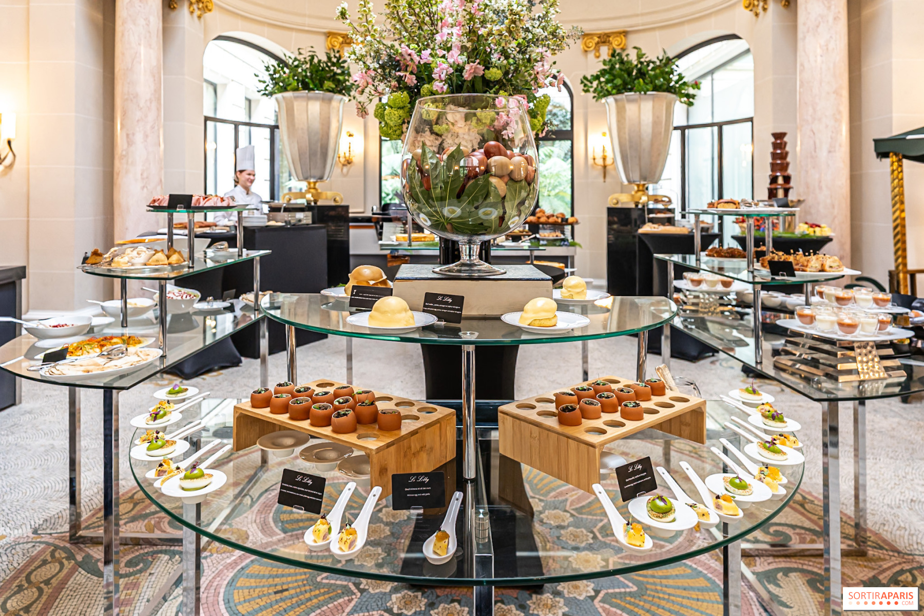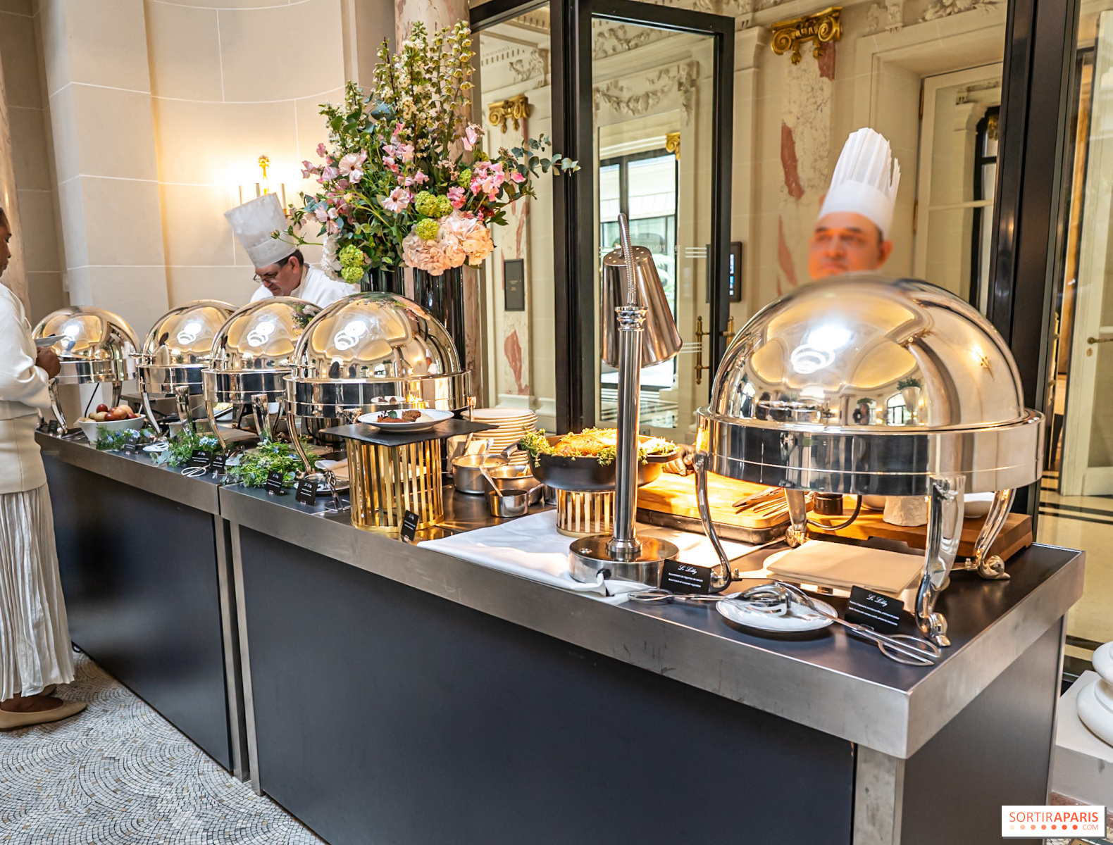 Du kommer också att vilja ta en titt på det imponerande urvalet av mogna ostar och de olika brödsorterna som erbjuds, innan du ger efter för den söta frestelsen: gyllene viennoiserier, hembakade kakor och en mängd bakverk där cheesecake ligger bredvid en krämig flan och en perfekt utförd choklad Saint-Honoré. Ett särskilt omnämnande bör göras av chokladfontänen, där du kan doppa i färsk frukt efter behag, om det nu inte är pommes d'amour du är ute efter.