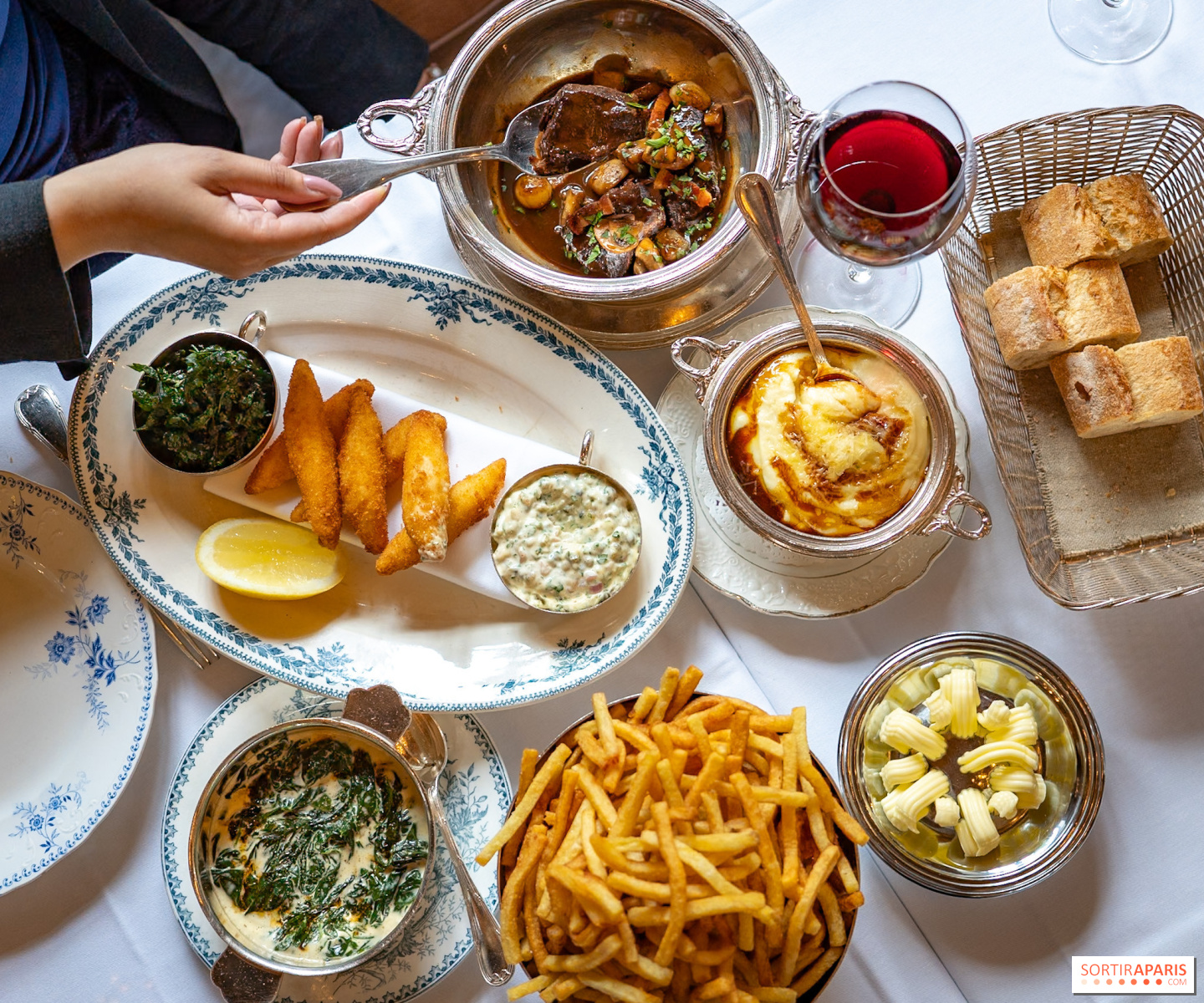 Vi går sedan vidare till huvudrätterna. Det är svårt att bortse från boeuf bourguignon (€38), restaurangens flaggskeppsrätt, som håller vad den lovar. Köttet, som är så smältande som man kan önska sig, badar i en fyllig sås med inslag av rödvin och sjudande grönsaker. Tillbehören - krispiga pommes frites, krämigt potatismos och gräddkokt spenat - är omsorgsfullt tillagade, välkryddade och erbjuder en stor variation av konsistenser. Vi stannar upp i två sekunder för att titta på chipsportionen, som är en måltid i sig!