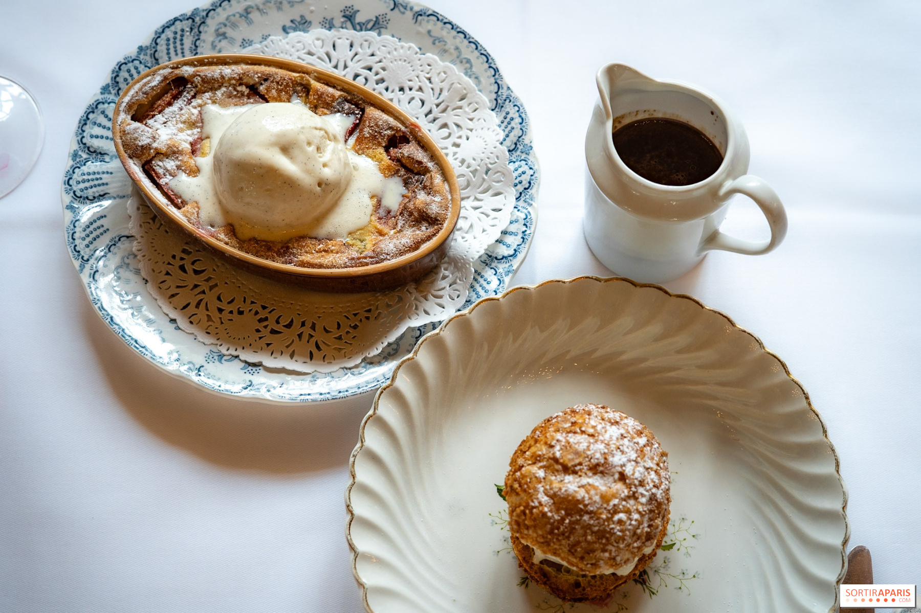 På den söta sidan kan du låta dig frestas av vaniljprofiterolen, toppad med varm choklad. Den är generös och kombinerar glassens lätthet, chouxbakelsens knaprighet och rikedomen hos en god mörk choklad.
