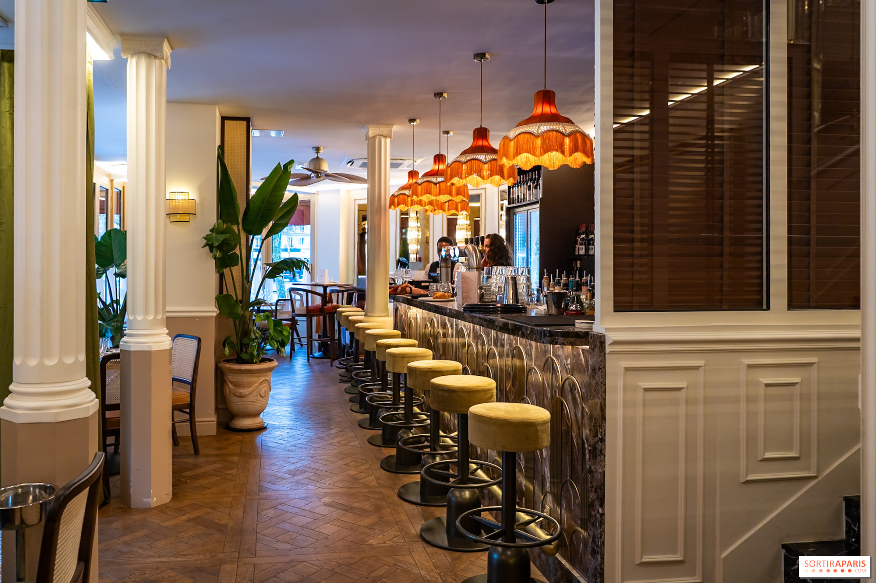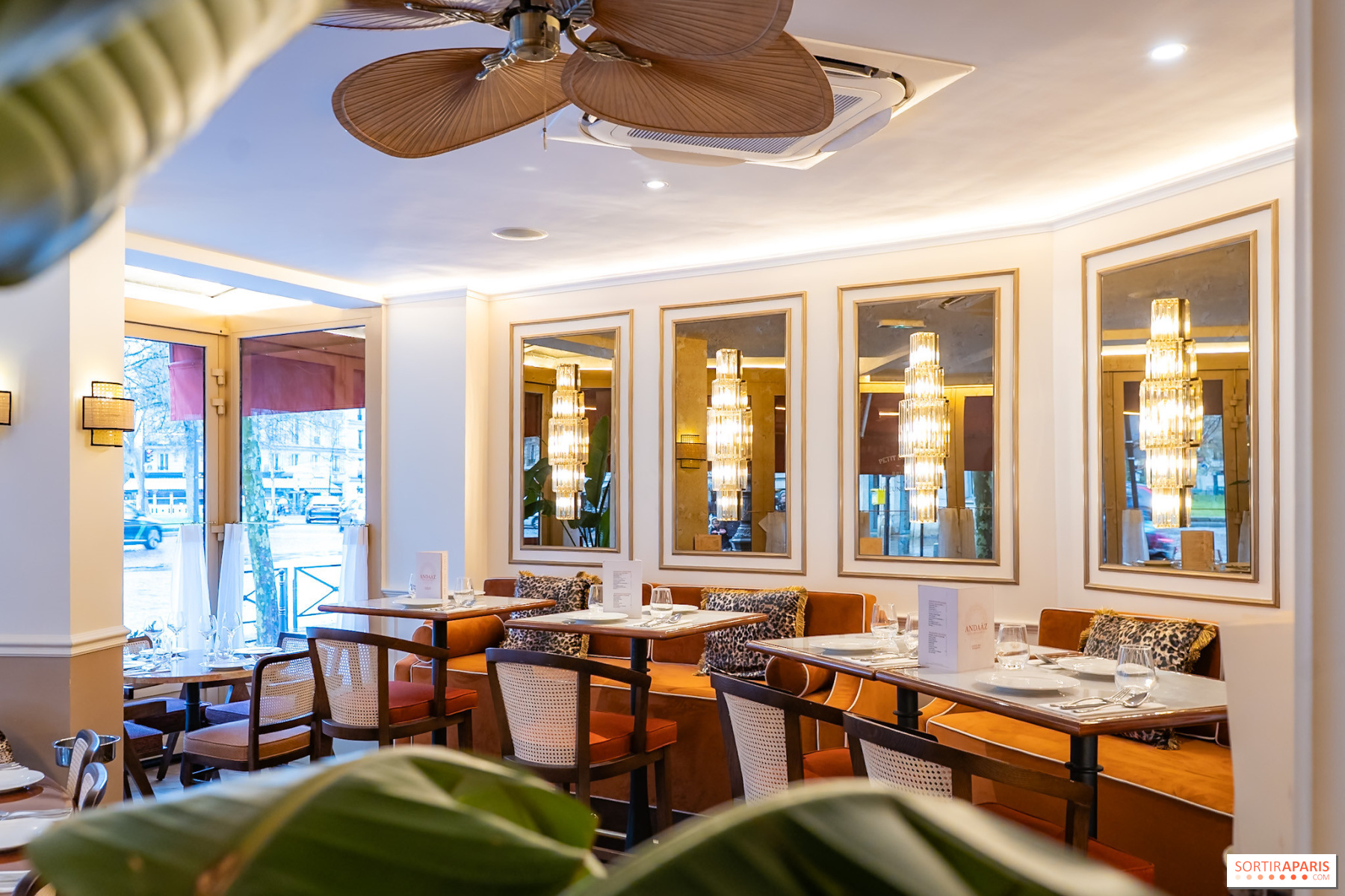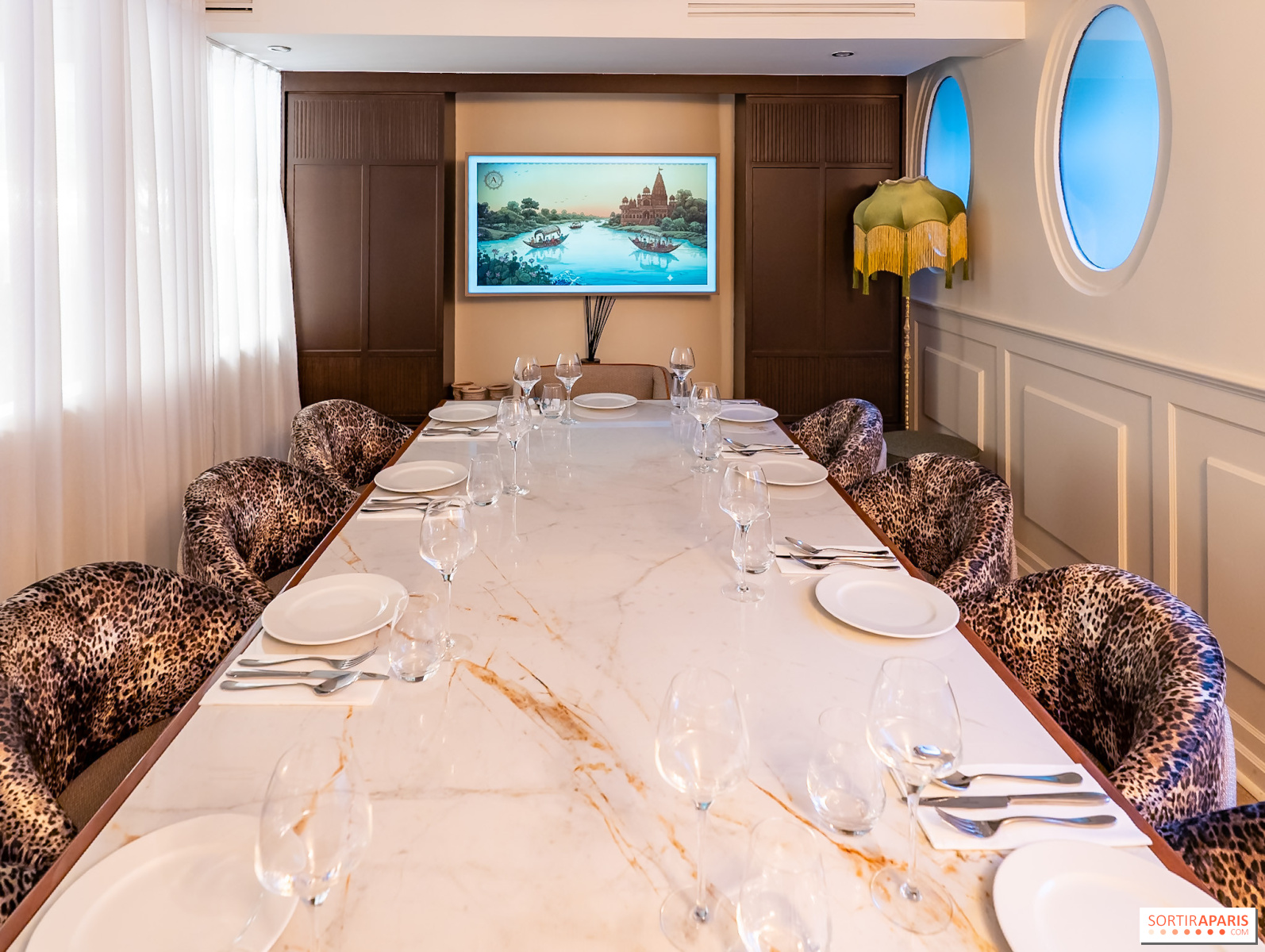ตั้งแต่ก้าวแรกเข้าไป ก็จะพบกับพื้นที่ที่ดูโดดเด่นและเป็นเอกลักษณ์ ร้านอาหารนี้กระจายตัวอยู่บน สองชั้น พร้อม บาร์กลางขนาดใหญ่ ที่เป็นจุดศูนย์กลางของพื้นที่ บรรยากาศภายในเป็นกันเองและเงียบสงบ ต่างจากร้านอาหารข้างทางที่เรามักจะต้องนั่งแนบชิดกับเพื่อนบ้าน ที่นี่คุณสามารถพูดคุยได้อย่างสบายใจและใช้เวลากับอาหารอย่างเต็มที่ การตกแต่งภายในซึ่งออกแบบโดย Charlotte Charbonneau สถาปนิกจากโลก Beaumarly ผสมผสานแรงบันดาลใจจากยุคเรโทรและกลิ่นอายความเป็นตะวันออกอย่างลงตัว ภายในเต็มไปด้วยงานประติมากรรมจากยุค 60 พื้นไม้แบบวอซ แพทเทิร์นลายสัตว์เสือดาว และสีสันสดใส สร้างบรรยากาศที่หรูหราและอบอุ่นเป็นกันเอง รายละเอียดที่ไม่คาดคิดคือ ผนังถูกปกคลุมด้วยผ้าพันคอ Hermès สไตล์อินเดีย เป็นการเชิดชูความเชี่ยวชาญด้านงานฝีมือของภูมิภาคนี้อย่างประณีต