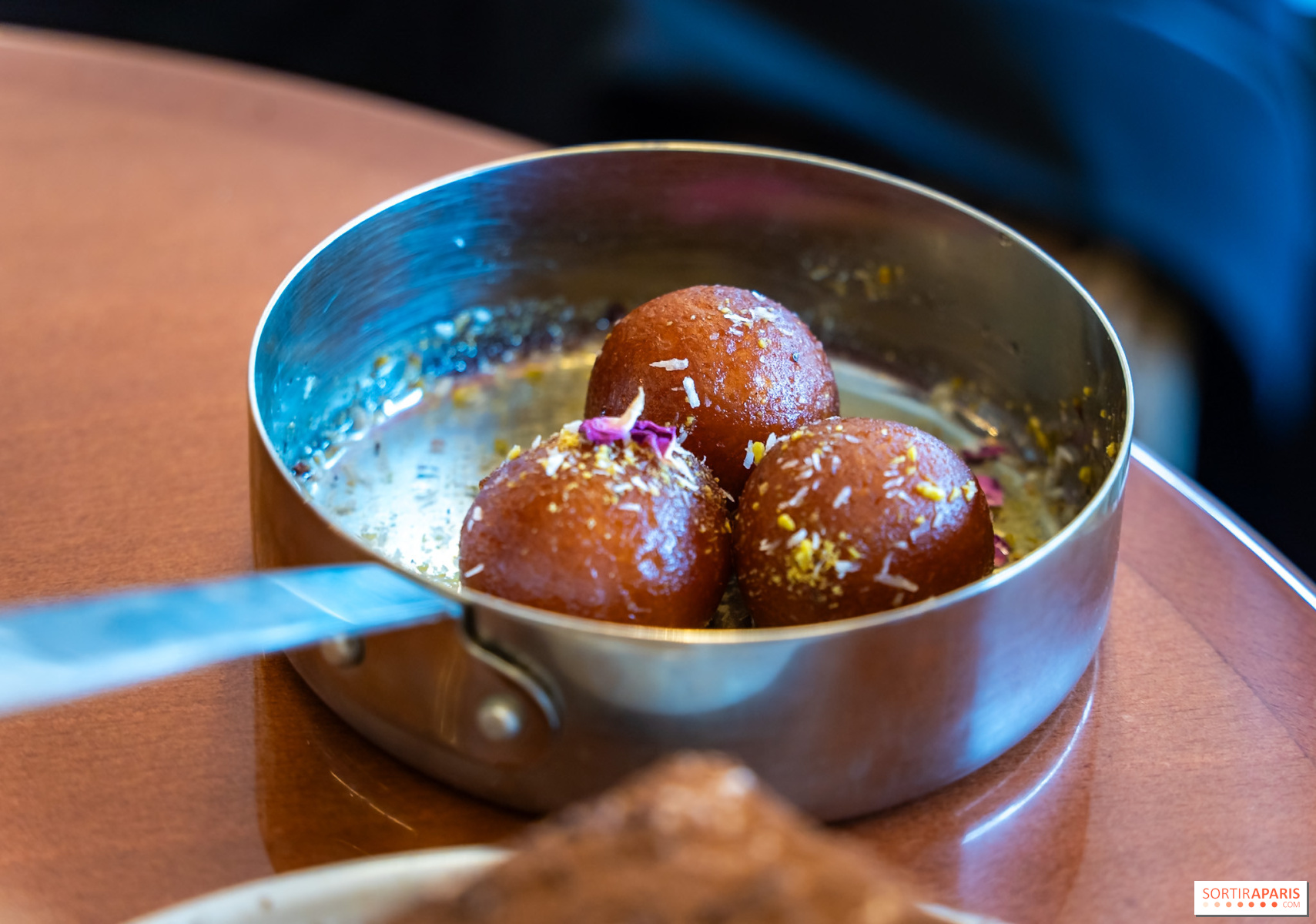 เพื่อปิดท้ายอย่างสมบูรณ์แบบ เราได้ลองชิมของหวานกันบ้าง โดย ชายทิรามิสุ (14€) เวอร์ชันที่นำความคลาสสิคของทิรามิสุมาปรับใหม่ ใส่บิสกิตชุบชากิ ซึ่งเป็นชาที่มีกลิ่นเครื่องเทศของอินเดีย การผสมผสานรสชาติลงตัวดีเยี่ยม คาร์ดามอมและซินนามอนในชาช่วยเติมความกลมกล่อมให้กับของหวานแบบดั้งเดิมนี้ และเรายังได้ลิ้มรส กูลับ จามุน (10€) ขนมใส่นมทอดในน้ำเชื่อมกลิ่นกุหลาบ รสชาติหวานจัดและให้ความรู้สึกอบอุ่น เป็นของหวานที่เนื้อเนียนละมุน เหมาะสำหรับคนรักของหวานกลิ่นอายตะวันออกแบบแท้ๆ ที่ทำออกมาได้อย่างน่าประทับใจ