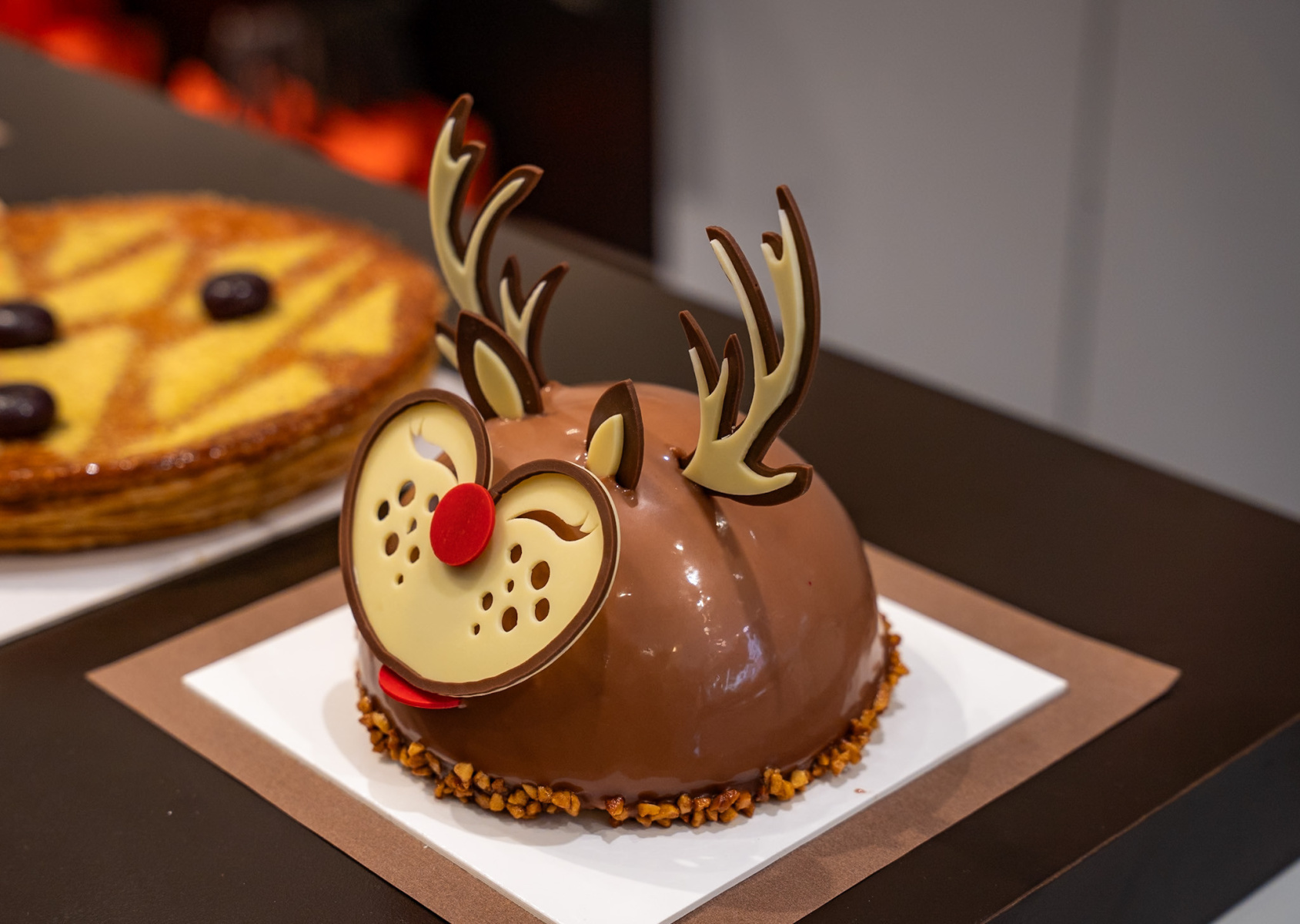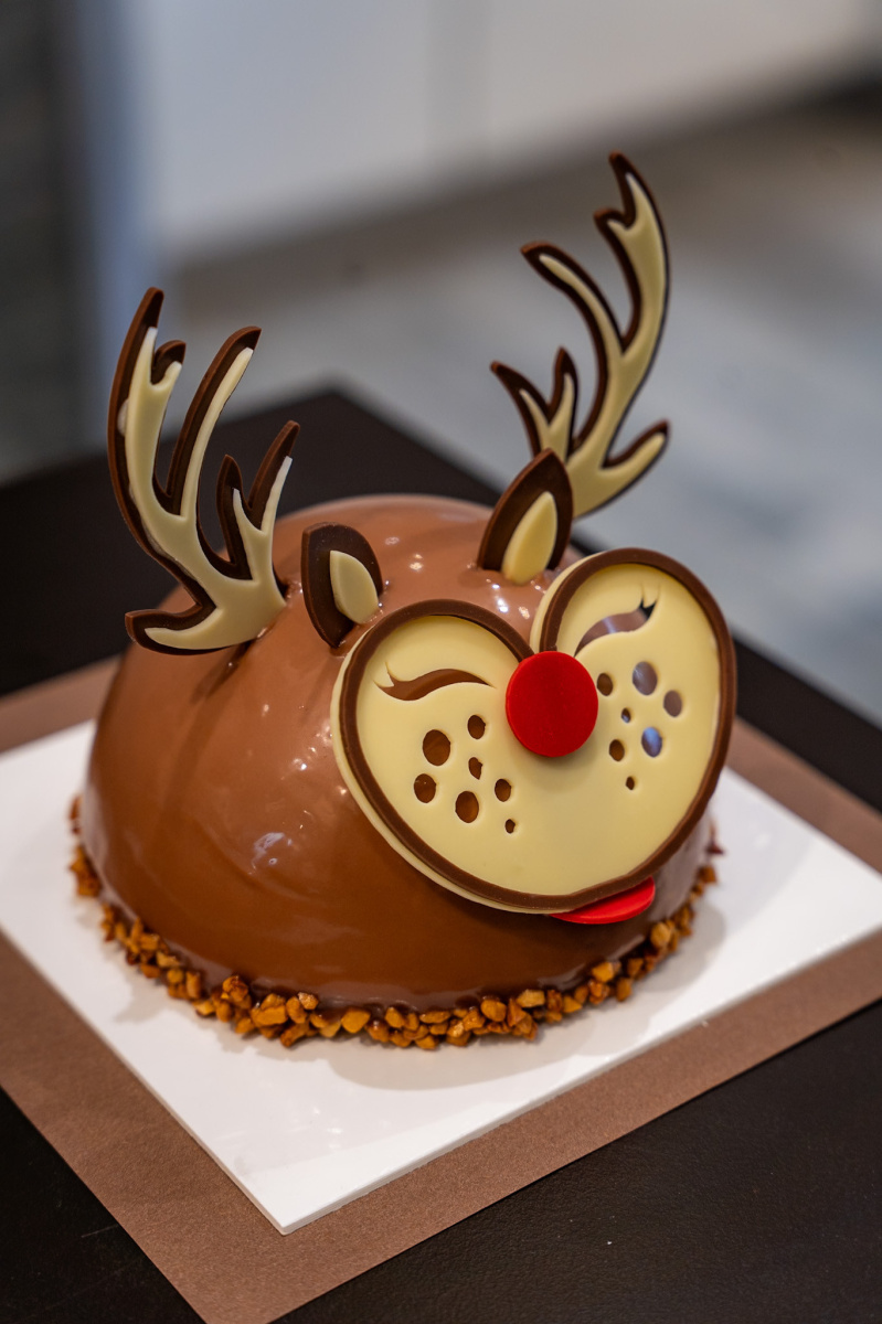 İtiraf ediyoruz, Arnaud Larher mağazalarının kapısından içeri girdiğinizde, gözlerinize bayram edeceğini biliyorsunuz. Vitrinleri, yıl sonunun kaçınılmaz randevularından biri ve şimdiden bayram havası yaşatıyor. Bu sefer dikkatimizi çeken, çikolatadan yapılmış şakacı bir ren geyiği olan Comète. Şakacı görünüşünün altında, bu yaratık bol fındıklı bir dacquoise, üzerine serpilmiş kavrulmuş fındık parçaları, çıtır fındıklı pralin, sütlü çikolata ganache ve sütlü ganache ile kaplı. Hepsini daha da lezzetli hale getirmek için ince sütlü çikolata yaprakları ile süslenmiş. Sütlü tatlıları ve birbirini tamamlayan dokuları sevenler için bir lezzet.
