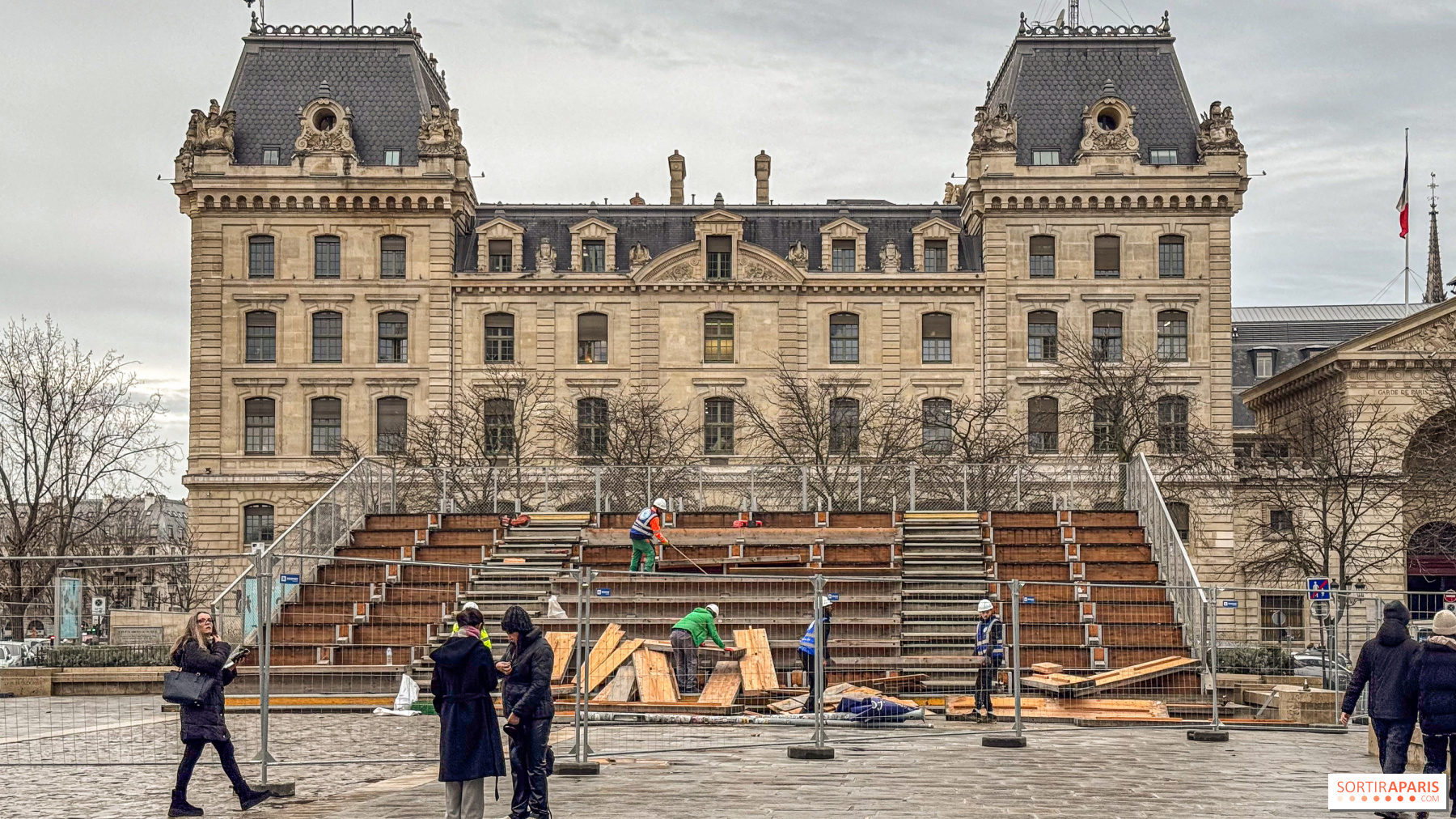 8 Ocak tarihli "İş Bilgi Güncellemesi" adlı mektupta, Paris Merkez Belediyesi açıklığa kavuşturdu ve Parisien'in de belirttiği gibi, hem tezgahların hem de gösteri yapım alanlarına ait yapıların sökülmesini kapsıyor. Çalışmalar, meydanda kurulu bir vinçle gerçekleştiriliyor ve bu süreç trafikte ve park yerlerinde geçici düzenlemeleri gerektiriyor. Polis Müdürlüğü tarafından alınan kararname, özellikle Cité Caddesi ile paralel olan ara yolda kısıtlamalar getirerek şantiyenin güvenliğini sağlama amaçlıyor.