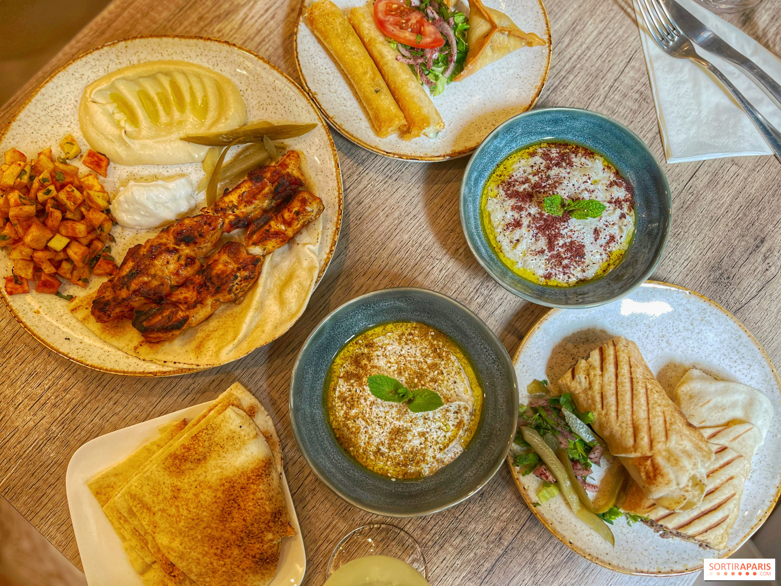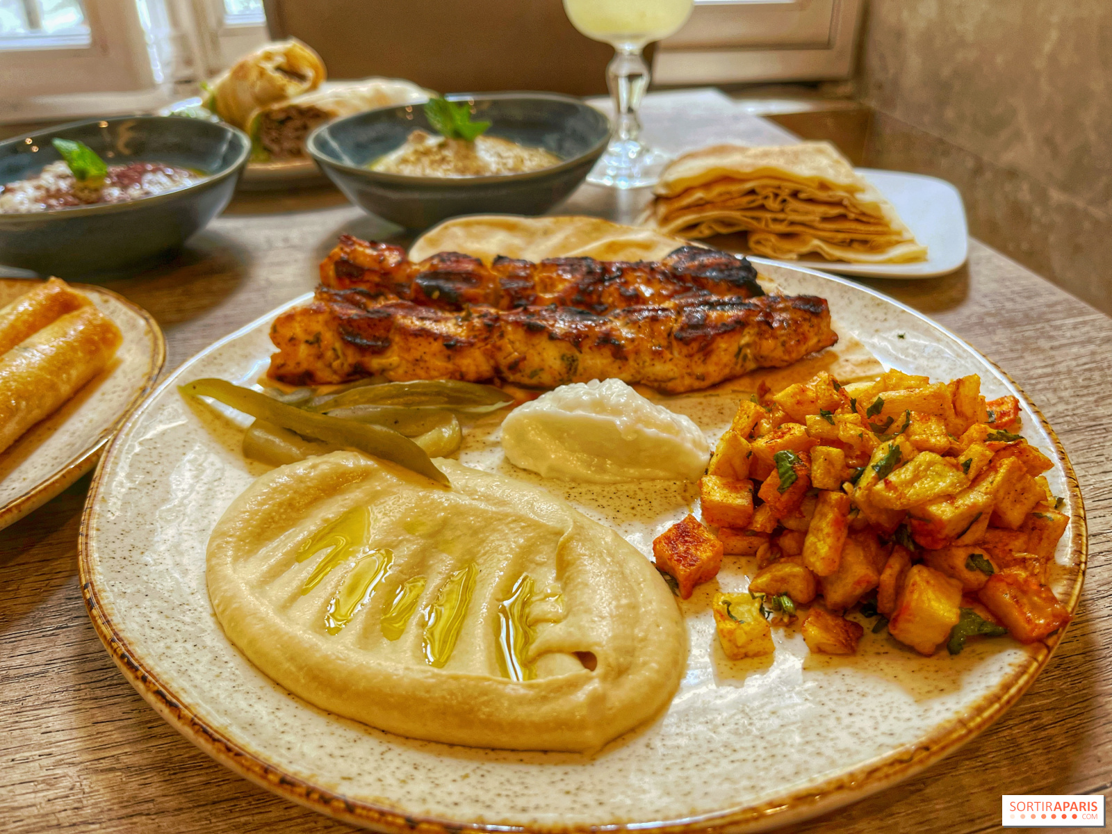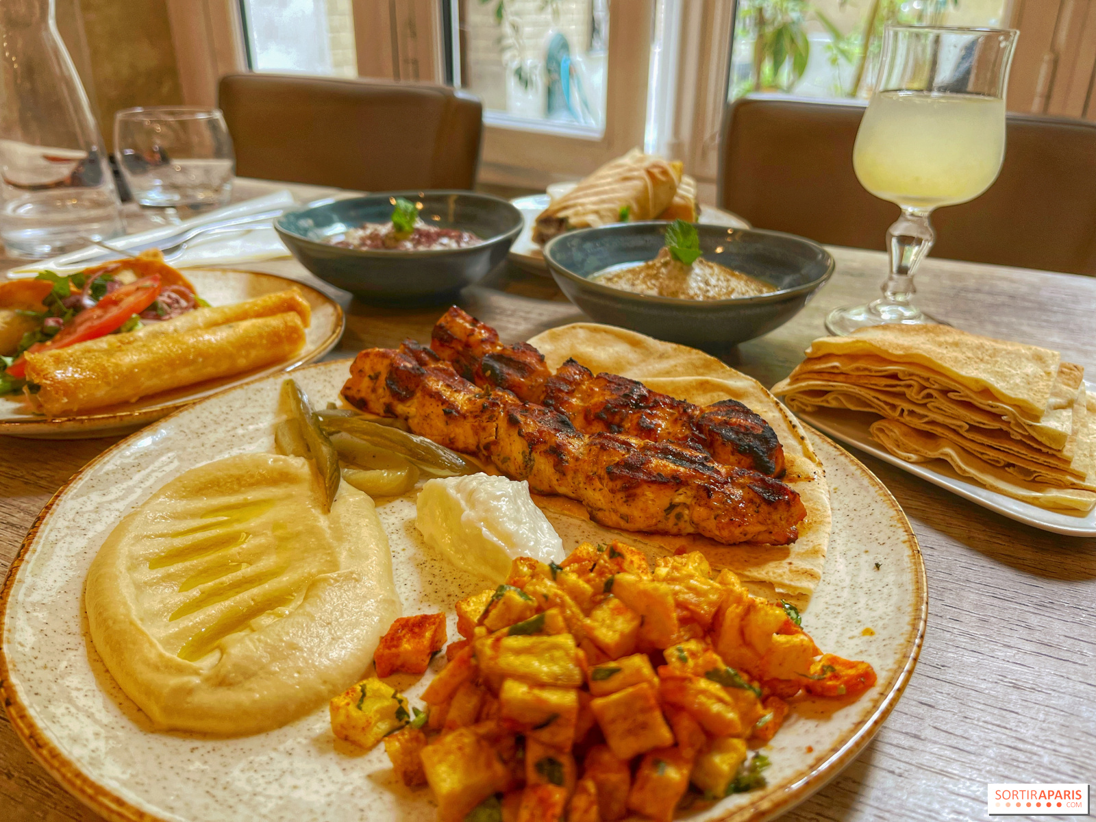 Ми настійно рекомендуємо курку Таук, оскільки м'ясо маринується і стає ідеально ніжним у цьому форматі шашлику, разом з хрусткою картоплею з коріандром і хумусом, таким типовим для левантійської кухні. Є кілька варіантів, щоб спробувати деякі страви з меню, не розорившись, від 14 до 25 євро, залежно від розміру вашого шлунку в цей день.