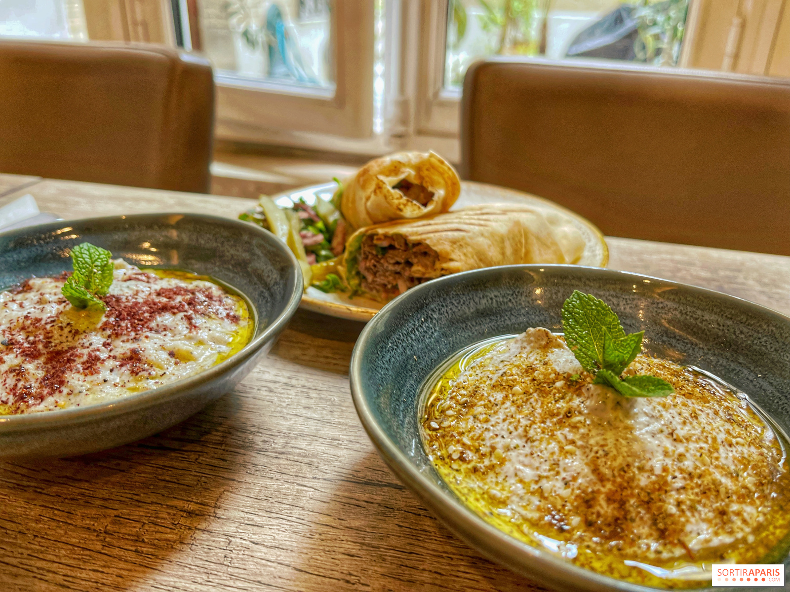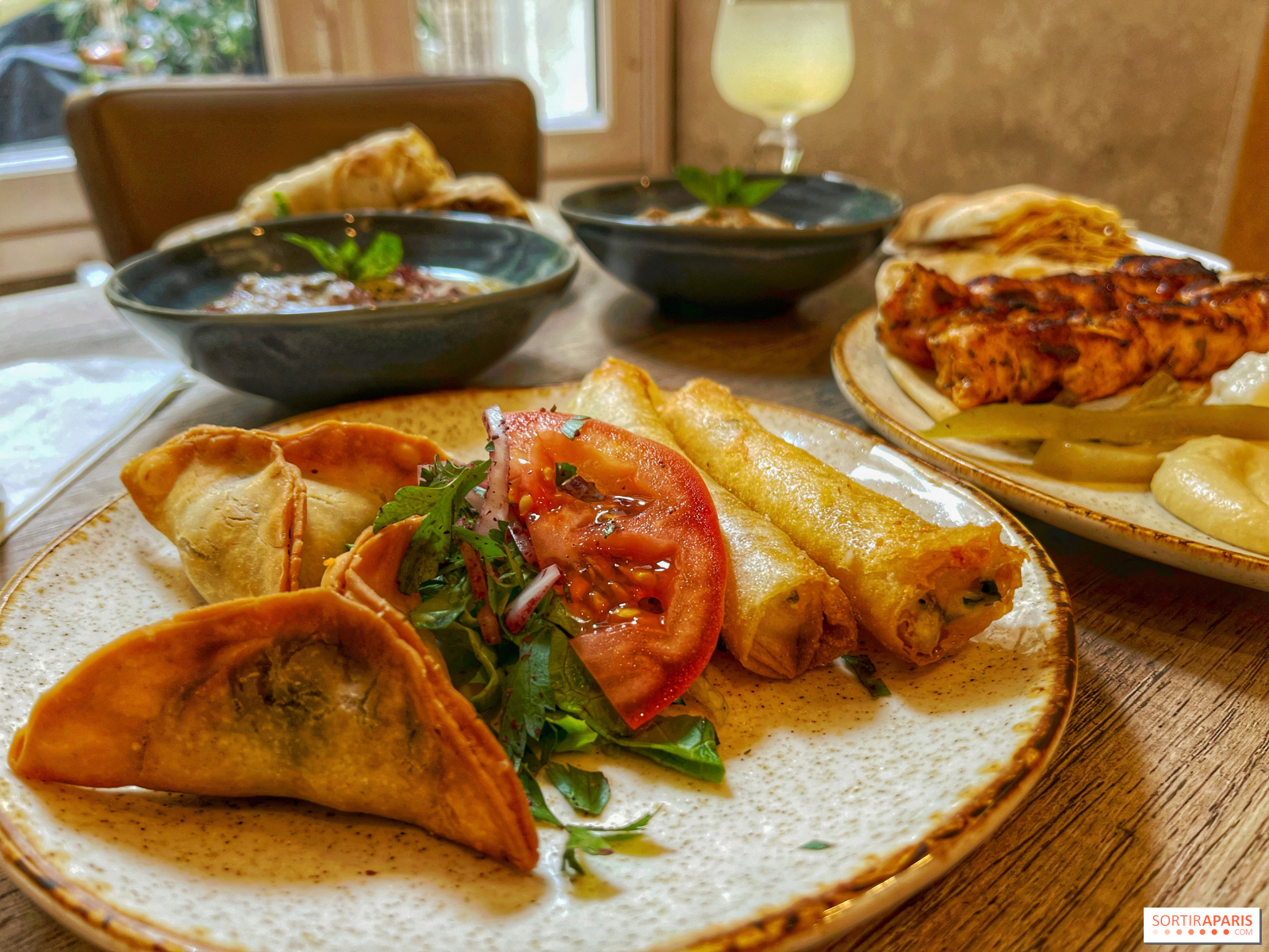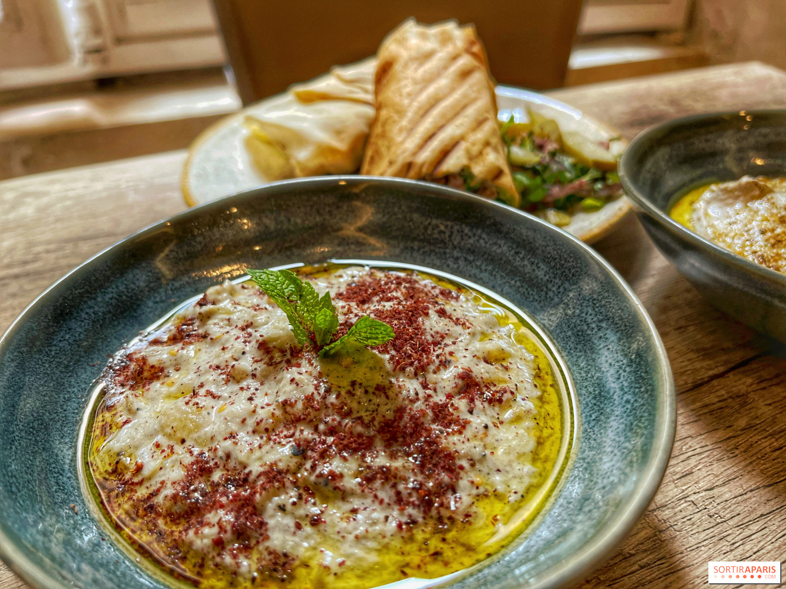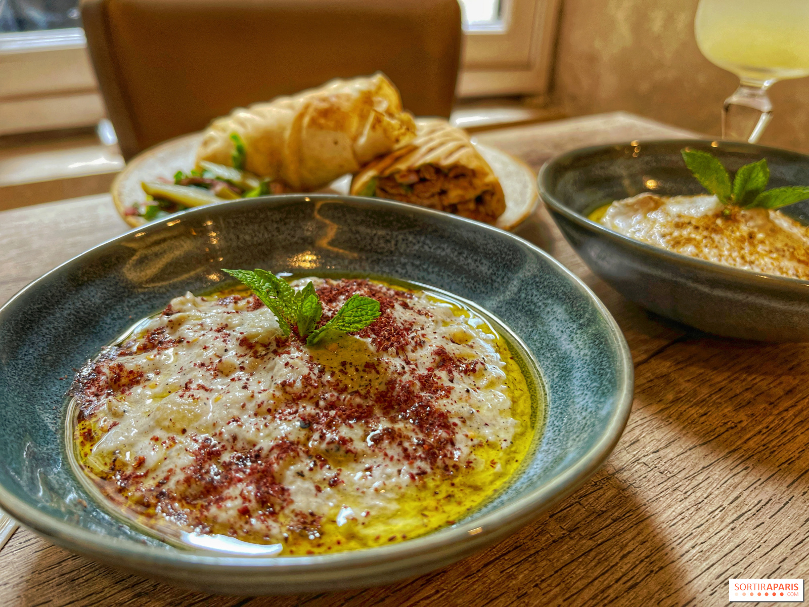 Ми також скуштували низку гарячих і холодних мезе, які ідеально підходять для того, щоб розгризти тарілку сусіда, наприклад, безперечний мустабаль, надзвичайно смачну баклажанну ікру, і лабне з заатар, дуже м'яким трав'янистим йогуртом, яким можна насолоджуватися з цим типовим хлібом, що його можна їсти нескінченно довго.