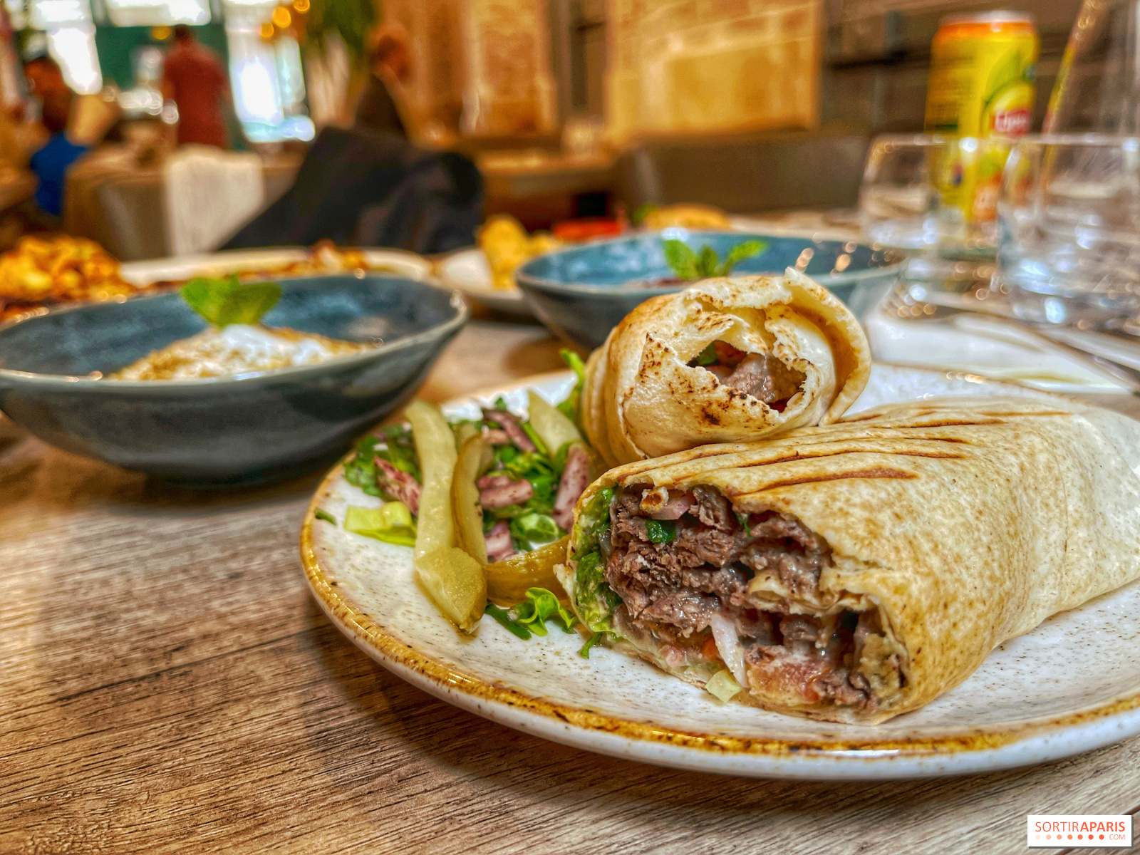 Якщо вам доводиться їсти на бігу, не пропустіть знамениті бутерброди з ліванського хліба за 7,50 євро! Ми зупинили свій вибір на яловичій чавармі з помідорами, корнішонами, сумахом і кремом тахіна, яка ідеально підходить для літніх місяців, тому що, незважаючи на свою ситність, вона не обтяжує шлунок, залишаючись легкою і делікатно приправленою спеціями.