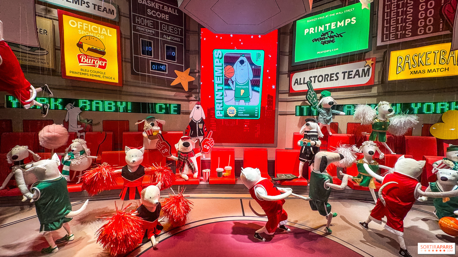 Це найвеселіше протистояння сезону: команди Printemps змагаються у запальному баскетбольному матчі. Нестримні чирлідери, стрибучі талісмани та Kiss Cam, яка взаємодіє в прямому ефірі з бульваром Haussmann, створюють божевільну атмосферу. Глядачі, затамувавши подих, стежать за кожним кидком, а на трибунах вболівальники команд стильно змагаються між собою. Ця вітрина передає спортивний і конкурентний дух Нью-Йорка з ноткою непереборного гумору. Ви відчуєте себе на справжній спортивній арені, де пристрасть до гри поєднується з радістю свят.