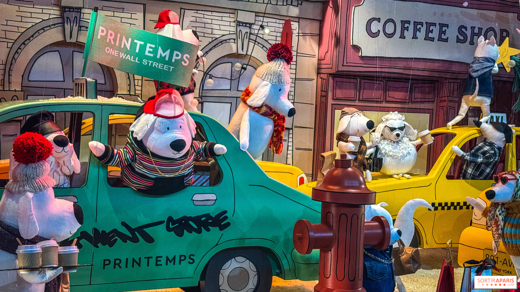 Цього року вітрини Printemps Haussmann віддають данину енергії Нью-Йорка, поєднуючи гумор, ніжність і графічні натяки. Маршрут, намальований як ілюстрований щоденник подорожей, занурює перехожих у міську подорож, сповнену несподіванок. Вітрини оживають, як кадри живого коміксу, з чорно-білим графічним кодом, натхненним коміксами New Yorker, що підкреслює пустотливі риси наших собачих героїв.