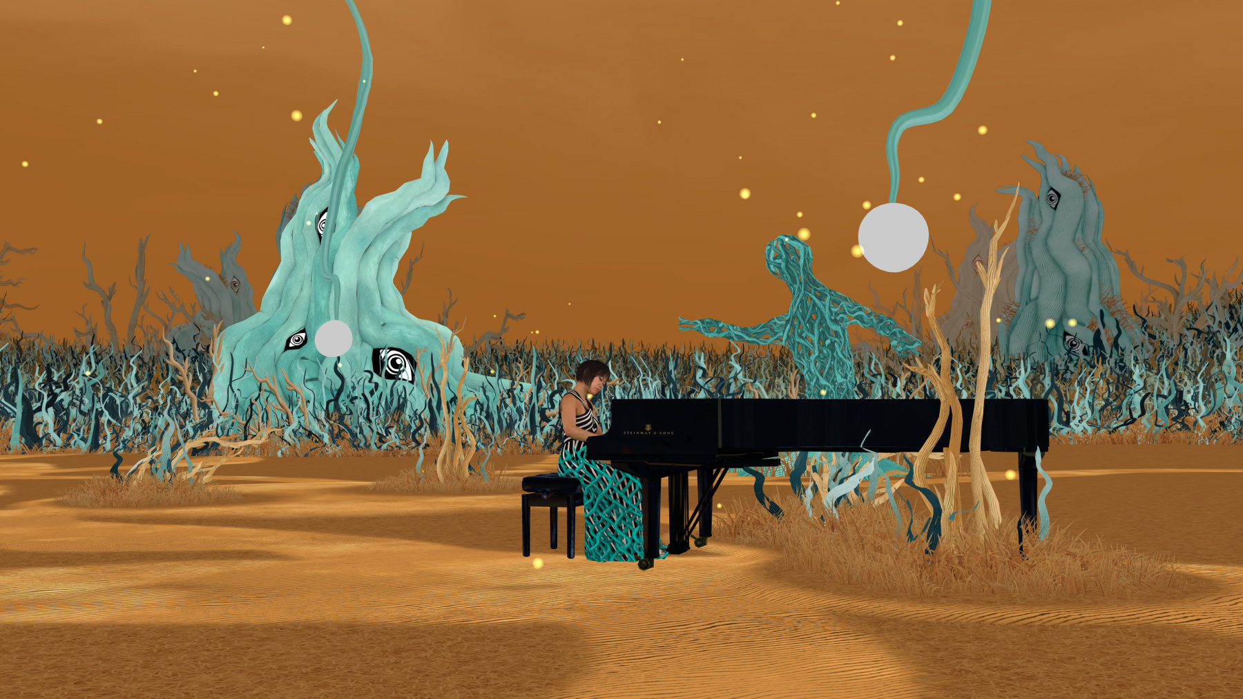 Досвід чергується між віртуальною та змішаною реальністю, залежно від вашого положення в просторі та ритму твору. Це більше ніж концерт, це сенсорна та наративна одіссея, збагачена рухомими візуальними ефектами художниці Габріели Фрідріксдоттір та імерсивним звуковим супроводом Ніколя Беккера, лауреата премії «Оскар».