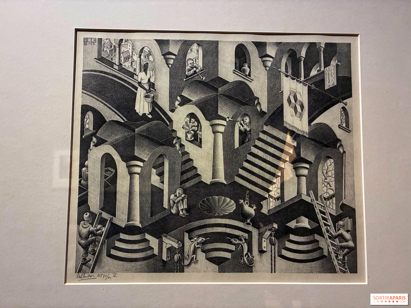Народившись у 1898 році в Леувардені, М.К. Ешер створив дивовижний графічний світ, далекий від звичайної перспективи, з візуальними парадоксами, неможливими масштабними іграми та перевернутою архітектурою. Ця виставка простежує його художній шлях і техніки, які він використовує, від його початків і подорожей Італією до найвідоміших творів, таких як «Відносність» (1953),«Рука, що тримає дзеркальну кулю» (1935) або«Небо і вода»(1938).