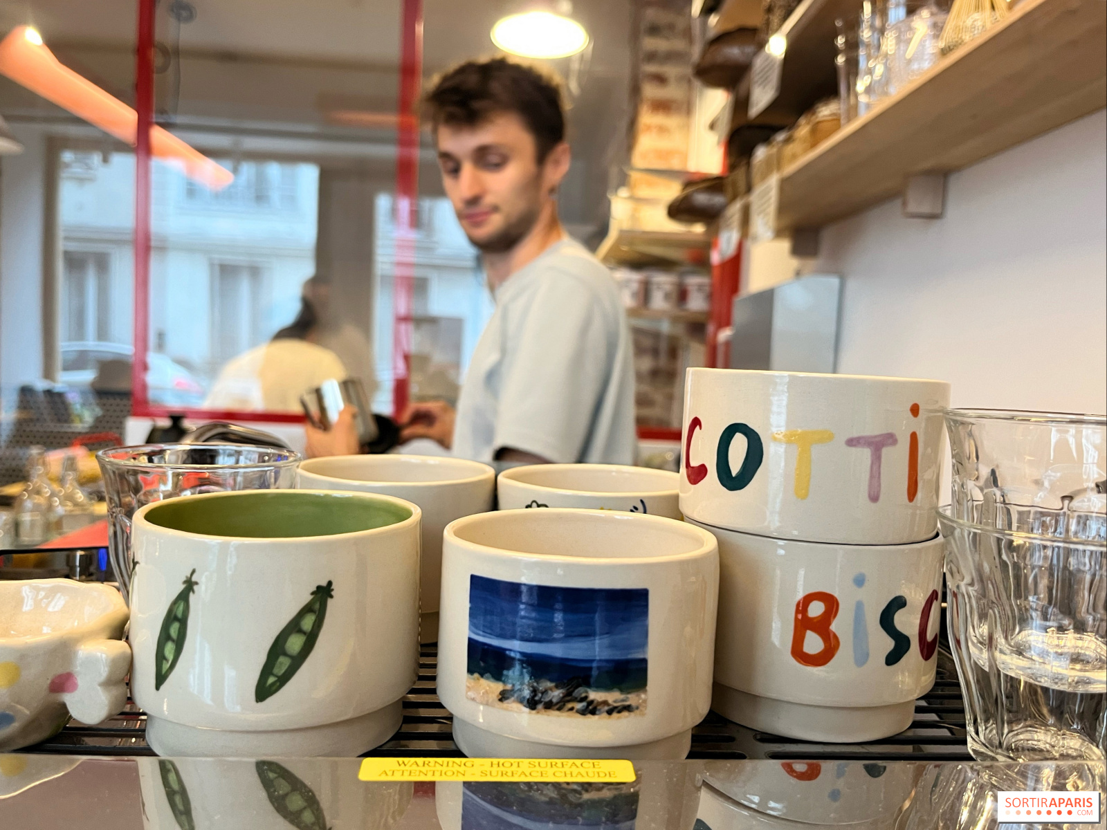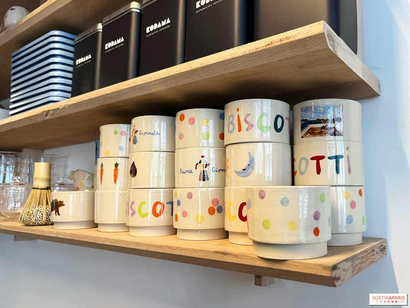 Пастельні кольори та дитячий дизайн: щойно ви заходите всередину, ви відчуваєте себе наче в коконі. У Biscotti Сара та Корті хотіли створити затишне місце, поєднуючи розпис на кераміці та фірмову каву. За кераміку відповідає Сара: вона вдосконалює свою майстерність вже кілька років, і саме вона розмалювала і змоделювала всі чашки, в яких подає каву!